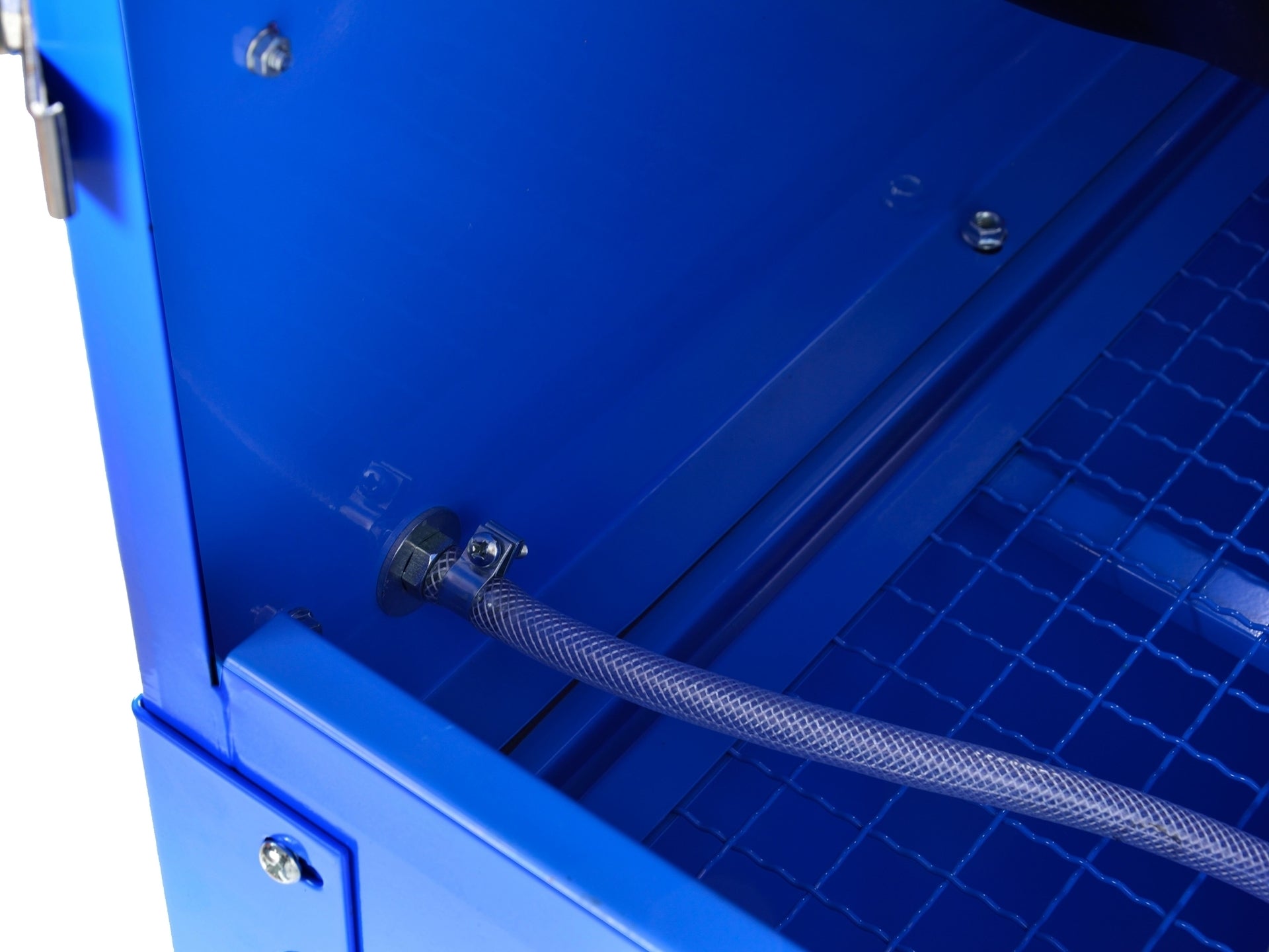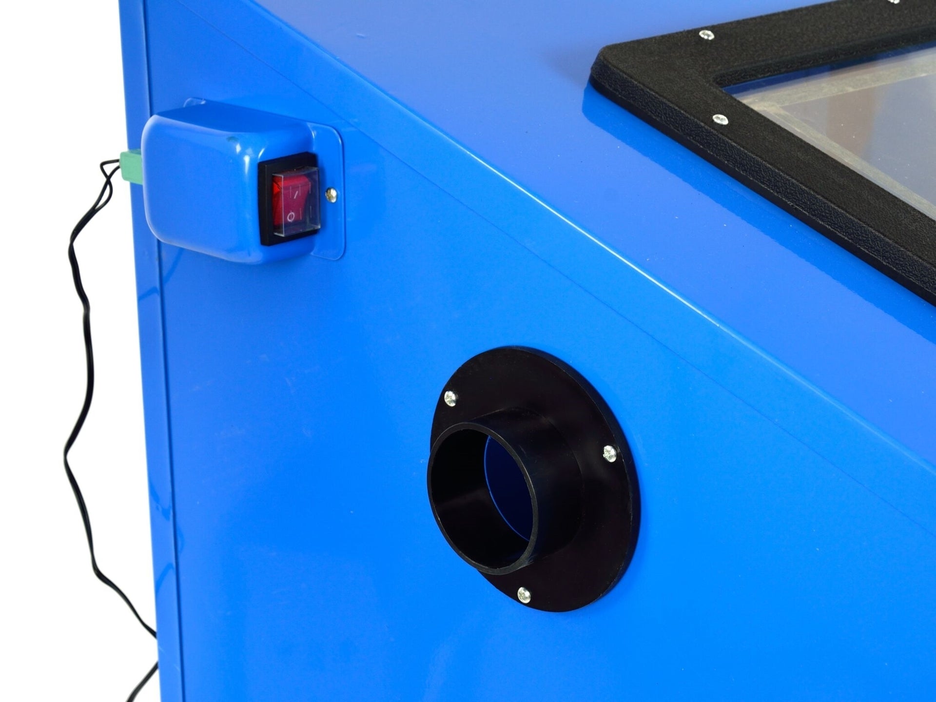Sablator de cabină cu o capacitate de 220 litri, proiectat să funcționeze într-un ciclu abraziv închis. Dispozitivul perfect pentru sablarea obiectelor mici și mijlocii. Mașina are o cameră solidă și spațioasă, cu o ușă laterală, un pistol de sablare, patru duze din ceramică, mănuși de lucru de înaltă calitate, iluminare a spațiului de lucru și o fereastră mare - un ochi. Design compact și spațiu de lucru mare și spațios. Ușurință de utilizare remarcabilă, fiabilitate și siguranță în muncă. Funcționarea fără praf a dispozitivului este asigurată prin utilizarea garniturilor periferice. Furtunul de sablare este situat la baza recipientului de colectare. Gaura de scurgere permite schimbarea rapidă a materialului de sablare