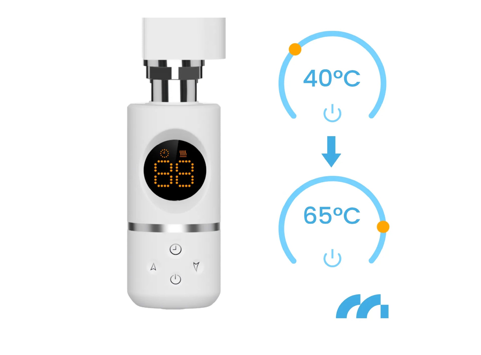 Datorita termostatului incorporat, dispozitivul va permite sa reglati temperatura in intervalul de la 40°C la 65°C , oferind caldura constanta si confortabila, fara a fi nevoie de o reglare manuala constanta.