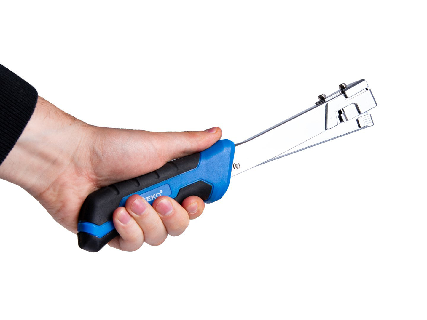 - In comparatie cu capsatoarele manuale standard, modelul cu ciocan se distinge prin usurinta in utilizare si ritm de lucru mai rapid. Datorita mecanismului de impact, este posibil sa coaseti fara a fi nevoie sa apasati constant tragaciul cu mana