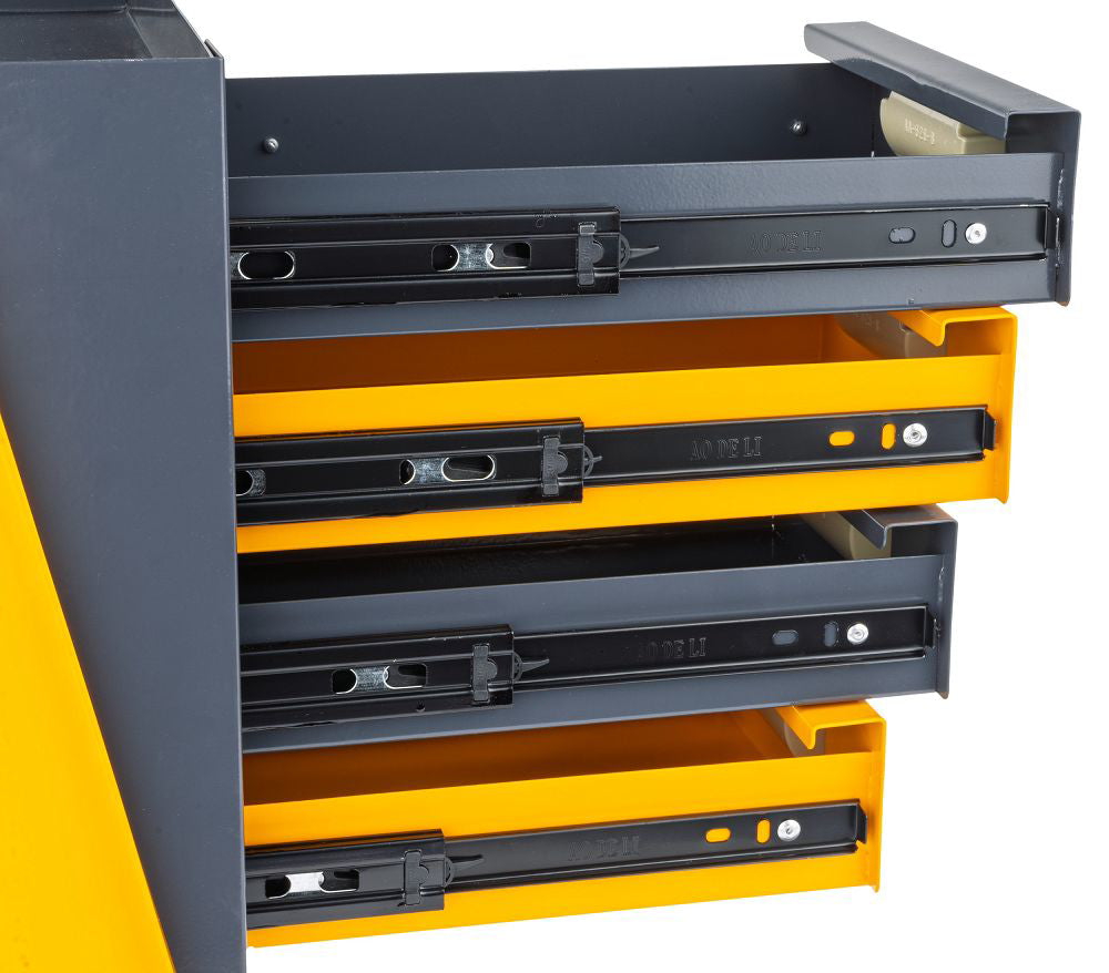 Caruciorul este echipat cu patru sertare care permit gestionarea eficienta a spatiului de lucru . Datorita acestei solutii, sudorul are acces rapid si usor la toate uneltele si accesoriile necesare, ceea ce se traduce printr- o eficienta sporita a muncii .