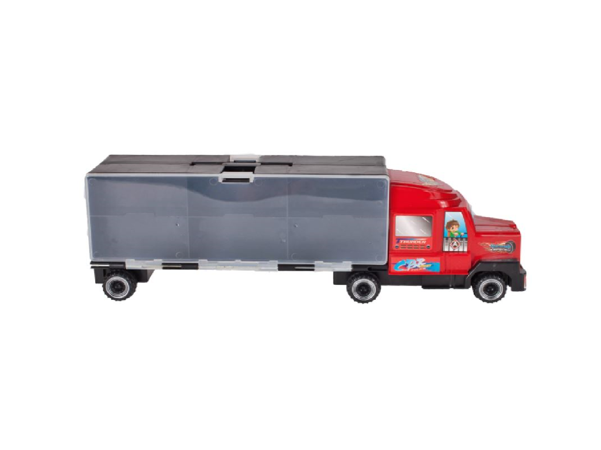 Sortatoarele pentru arcuri au un capac transparent, care are o montare in partea superioara a jucariei, care garanteaza protectia impotriva caderii in timpul transportului. Camionul rosu poate fi folosit ca container pentru masini mai mici sau o jucarie separata - totul depinde de imaginatia baiatului.