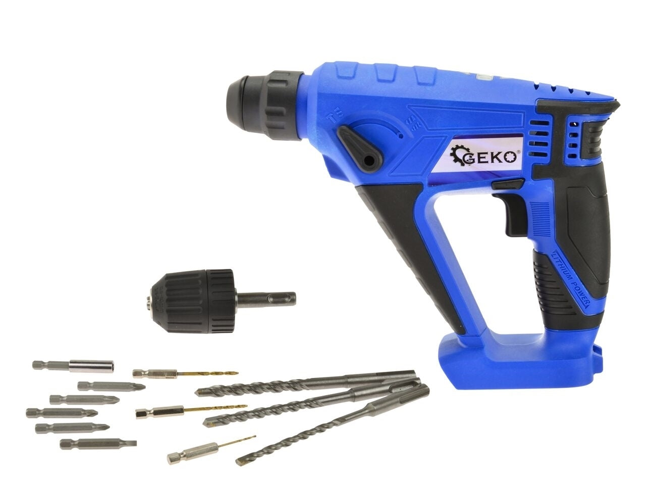 Ciocanul perforator de la Geko va ofera garantia unei lucrari eficiente. Acest ciocan vine in dotare cu o putere superioara datorita tehnologiei revolutionare Li-on. Functia de gaurire cu percutie, cuplul mare, anduranta exceptionala, lucrul constant fara uzura reprezinta caracteristici ce il recomanda pentru a fi folosit chiar si in cele mai dificile conditii de lucru. Fiabil si sigur in utilizare, ciocanul perforator Geko are o dubla functie, astfel incat poate fi folosit ca si ciocan perforator sau ca si masina de insurubat.