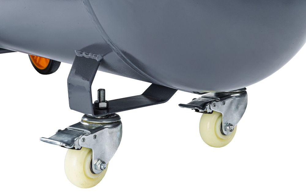 Compresorul este usor de mutat datorita rotilor pivotante si manerului de transport convenabil.
