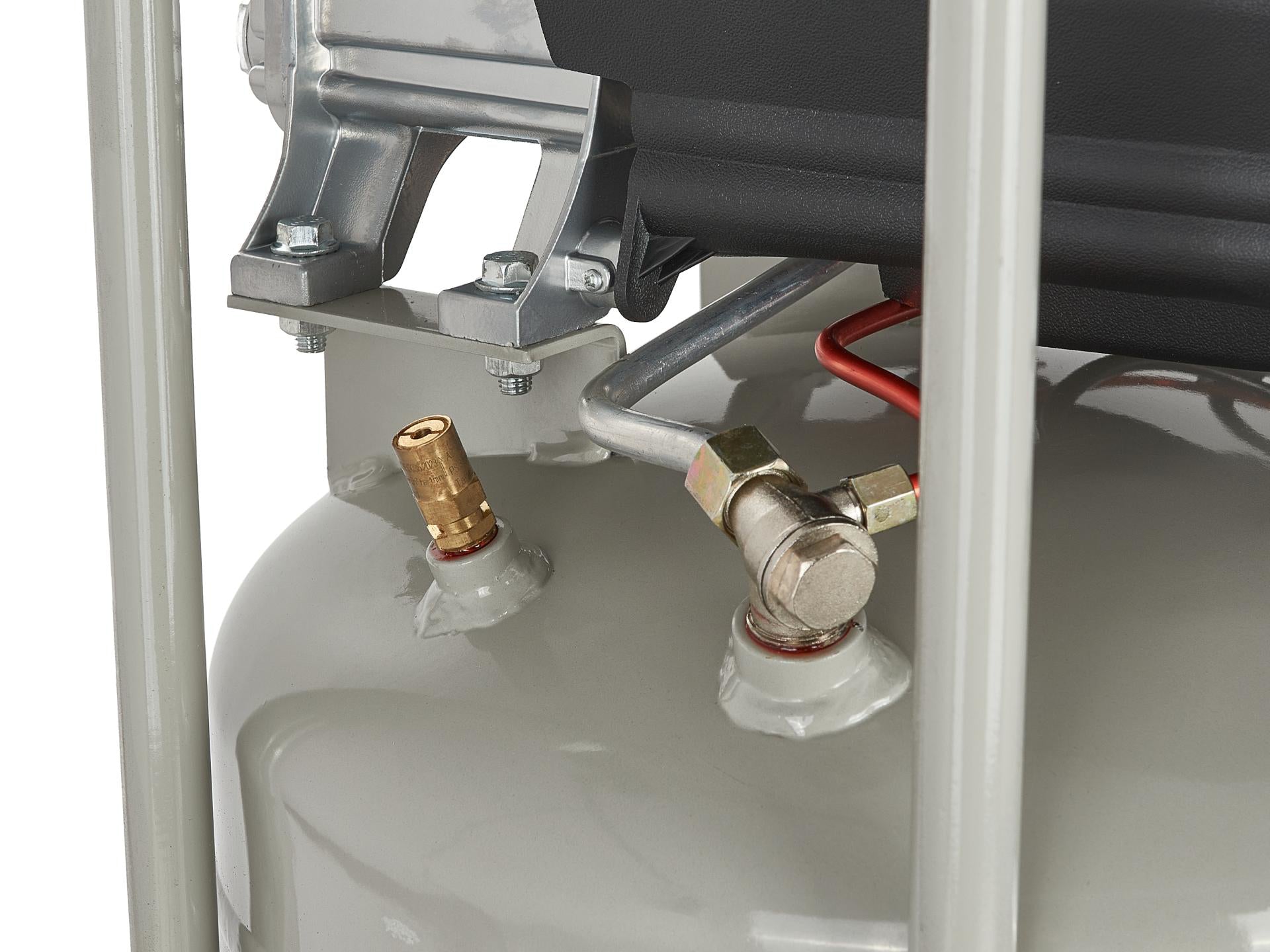 - Design Vertical Compact: Designul vertical economiseste spatiu si face ca compresorul sa fie usor de depozitat in ateliere sau garaje cu spatiu limitat.