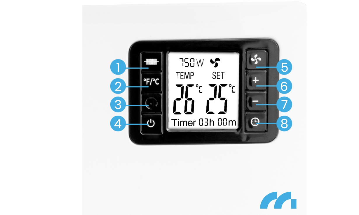 - TIMER - control complet asupra duratei de functionare a incalzitorului de la 1 la 24 de ore.