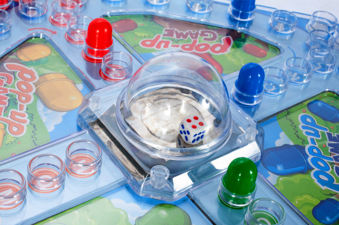 Setul de joc este format dintr-o tablă colorată, din plastic, cu dimensiuni de 26 x 26 cm. Placa este împărțită în patru zone.