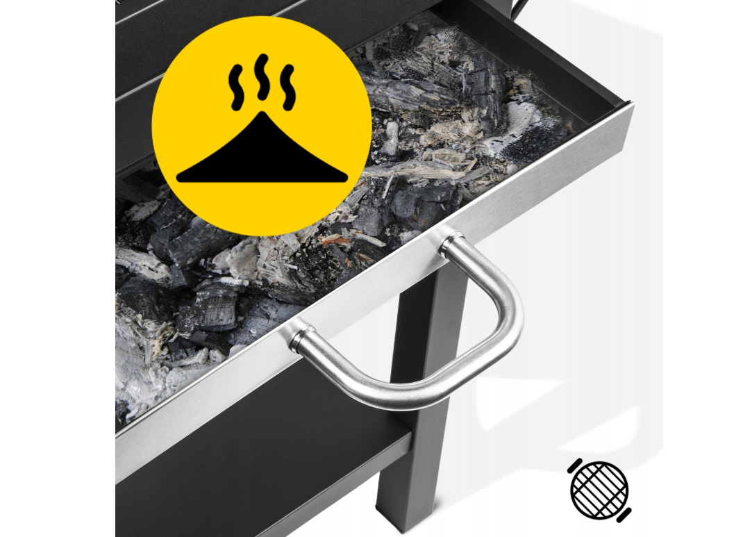 Gratarul este echipat cu doua rafturi laterale mari si un raft suplimentar inferior , care va permit sa depozitati in mod convenabil alimente, condimente, feluri de mancare si accesorii necesare intr-un singur loc, mereu la indemana.