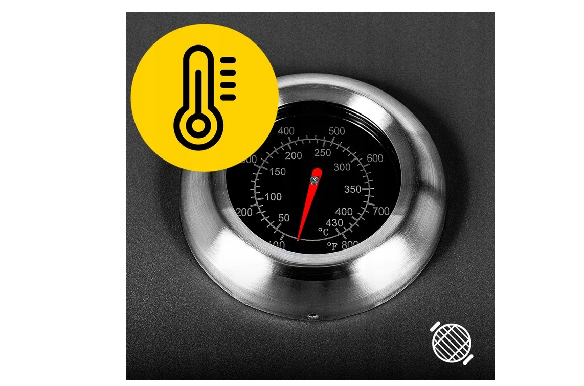 Datorita dimensiunilor mari ale grilajului , constructiei stabile si rafurilor practice , va functiona bine in gradina, pe teren, precum si pe terasa. Poti prepara mai multe tipuri de mancare in acelasi timp, iar termometrul incorporat te va ajuta sa atingi temperatura perfecta pentru gratar .
