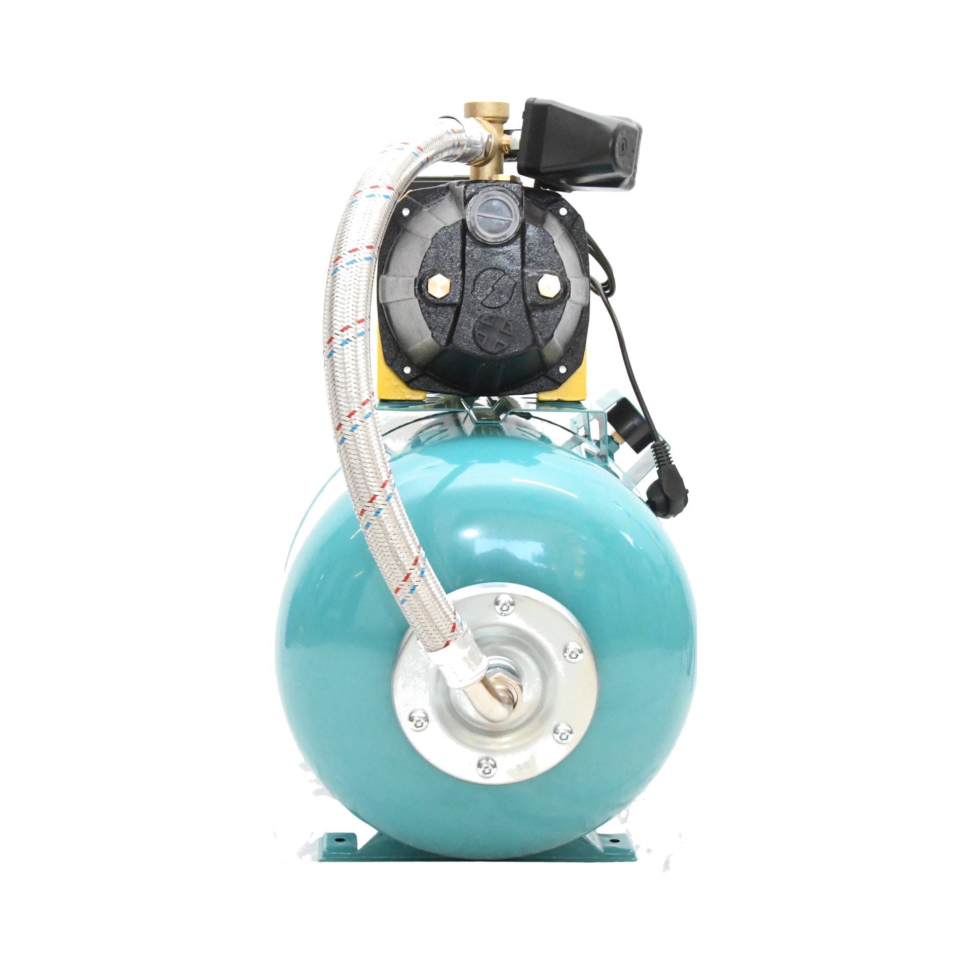 Hidrofor Maxima JY100A(a) /50 echipat cu bazin de 50 Litri cu manometru, putere 1.3Kw, ideal pentru alimentarea locuintelor cu apa de consum. Hidroforul trebuie sa fie instalat in locatii protejate de intemperii. Pompa este echipata cu cablu de alimentare de 1 m. Capacul frontal al pompei din fonta.O dimensiune mai mare a rezervorului duce la cresterea duratei de viata a produsului. Rolul manometrului montat pe rezervor este de a indica presiunea aerului din vas, usurand monitorizarea de catre utilizator.