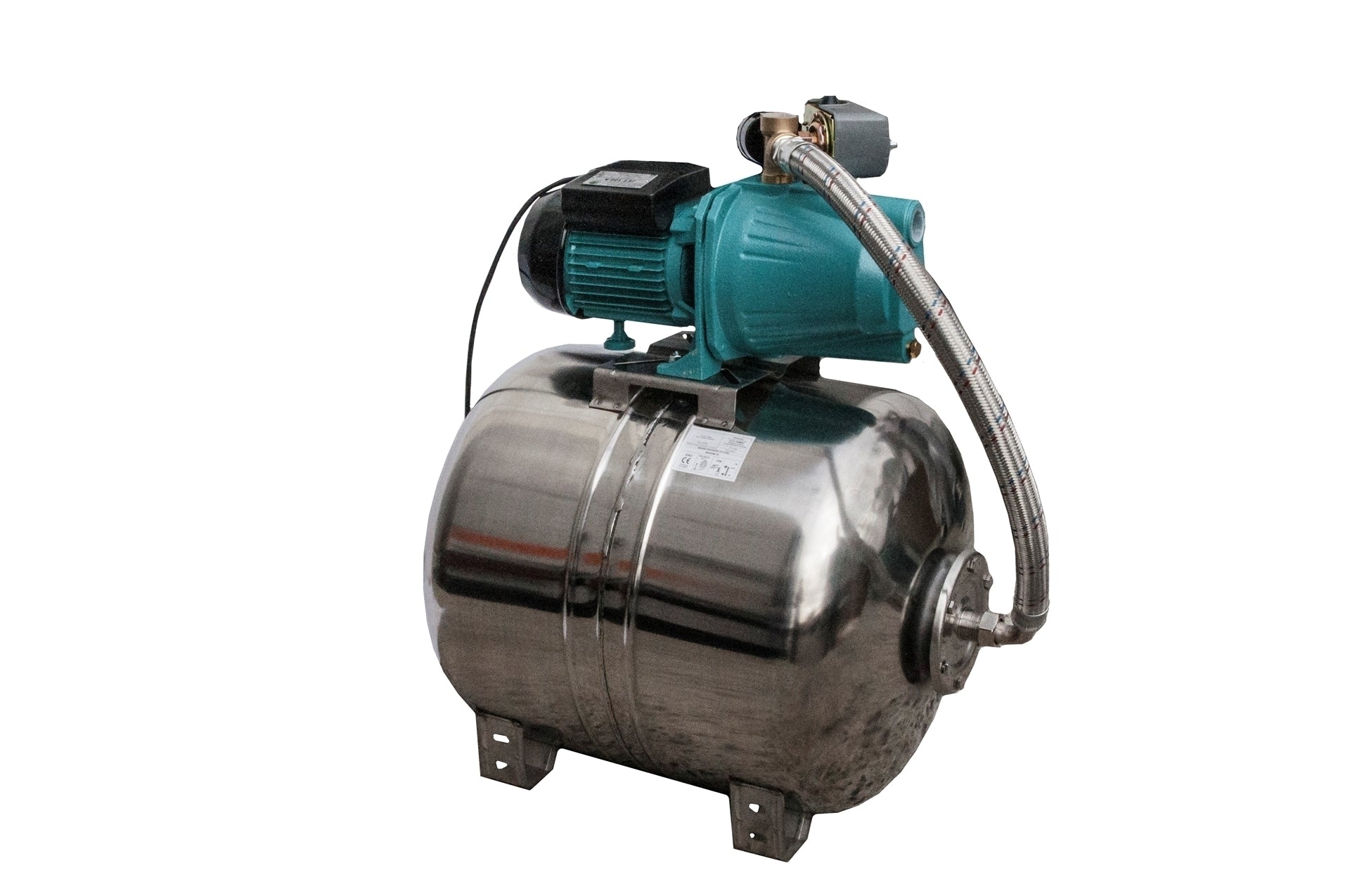 Sistem automat de alimentare cu apa din puturi si fantani utilizat pentru uz casnic, instalatii mici de uz civil, agricol, industrial, instalatii de spalare si alte aplicatii. Este alcatuit dintr-un rezervor cu membrana cu capacitate de 80 litri din inox, presostat pentru functionarea automata, manometru, electropompa prevazuta cu cablu de alimentare cu stecher si kit de racord intre pompa si rezervor, ce vin deja montate si gata de utilizare. Corpul pompe este din fonta. Motorul este de tip asincron, inchis, racit cu ventilare externa. Rotorul este montat pe rulmenti cu sfere supradimensionate, lubrifiate pe intreaga durata de functionare pentru a garanta silentiozitate si durata mare de viata. Are protectie termoampermetrica incorporata si condensator cuplat permanent. Gradul de protectie al motorului este IP 44. Rezervorul este de tip orizontal, cu o capacitate de 80 litri din inox, cu membrana EPDM, prevazut cu bride de sustinire in partea inferioara si bride pentru fixarea pompei in partea superioara. Alimentarea cu apa este o necesitate pentru orice gospodarie si pentru orice tip de activitate comerciala, industriala sau agricola. Omnigena a conceput hidroforul JET 100A/80 pentru ca oricine sa poata beneficia de accesul nerestrictiv la apa. Hidroforul functioneaza in regim automat pentru a furniza apa in orice moment al zilei este nevoie. Resedintele din zone in care nu exista posibilitatea racordarii la reteaua de apa pot dispune de toate conditiile necesare traiului si activitatilor cotidiene prin instalarea acestui hidrofor. Acesta are o capacitate foarte mare de pompare si poate asigura livrarea apei in instalatii sanitare cu o presiune foarte buna. Hidroforul JET 100A/80 poate asigura apa necesara pentru a suporta toate activitatile dintr-o locuinta, de la spalarea vaselor, la dusurile zilnice si masina de spalat rufe. Cu ajutorul hidroforului oricine poate beneficia de alimentarea cu apa curenta. In special in zonele rurale, unde in cea mai mare parte nu exista distributie de apa, hidroforul poate rezolva o problema esentiala si vitala. Produsul este fabricat in Polonia.
