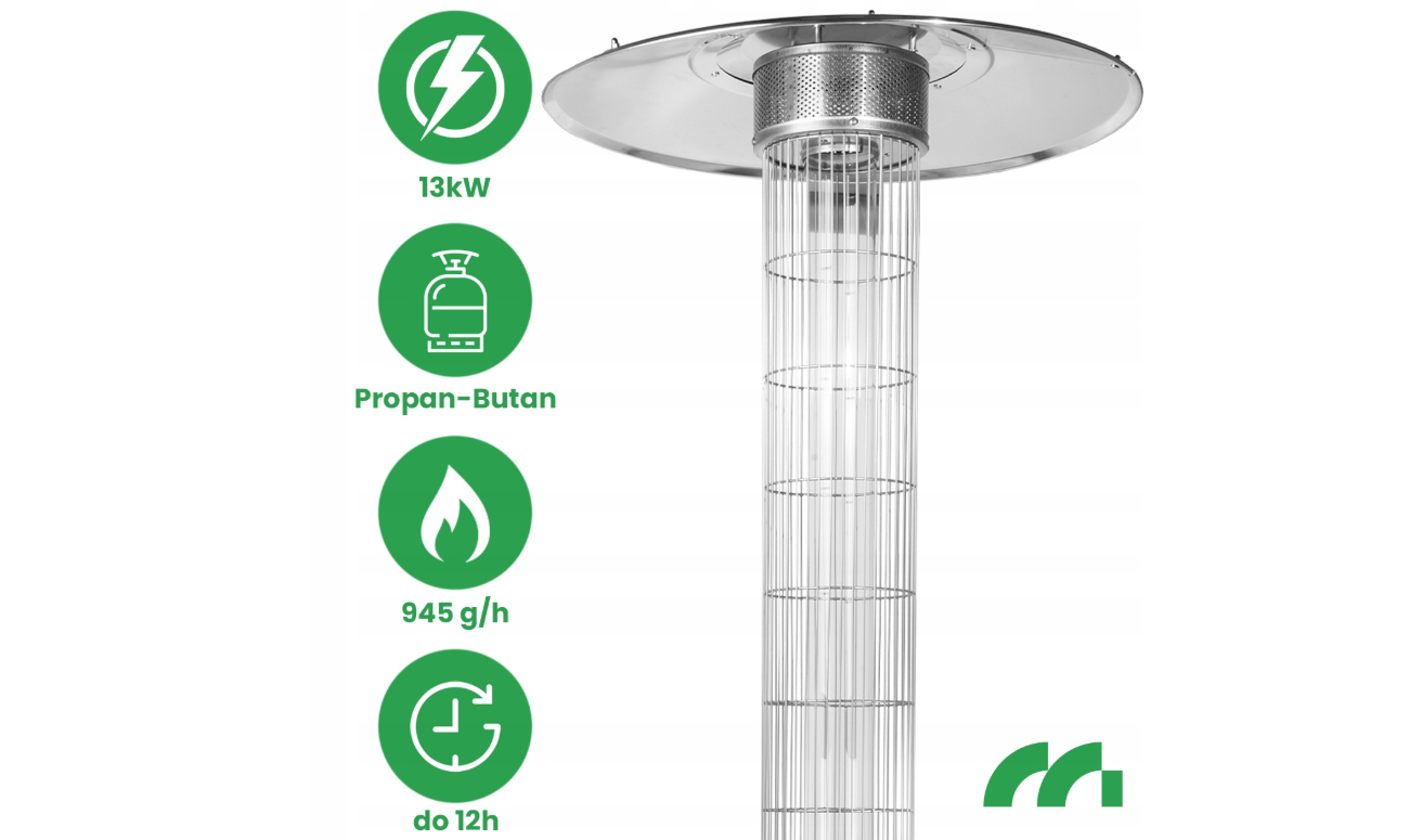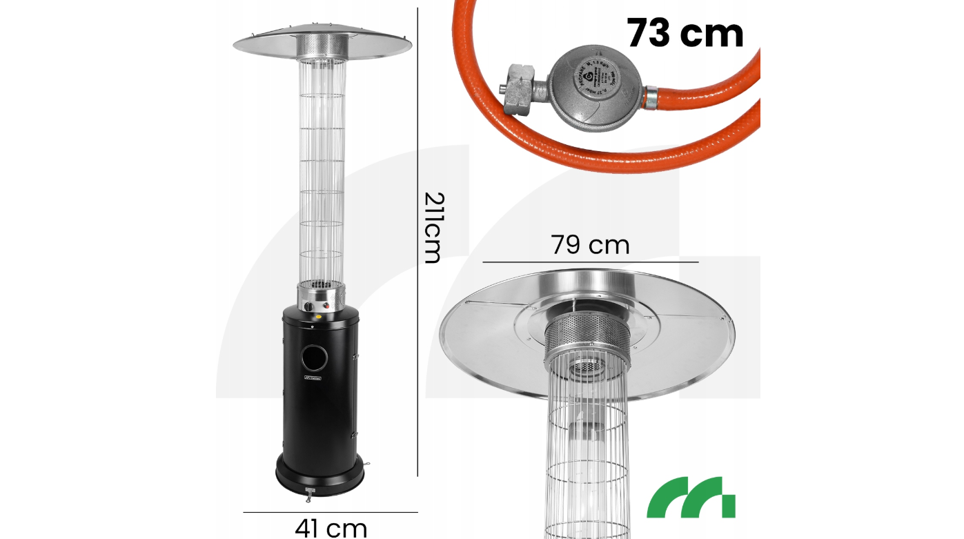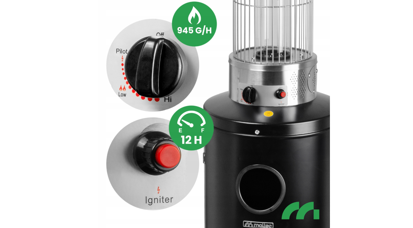 Incalzirea eficienta a suprafetelor de pana la 20 m² , siguranta utilizarii si stabilitatea structurala il fac o alegere ideala pentru terase, balcoane, gradini de restaurante sau evenimente in aer liber.
