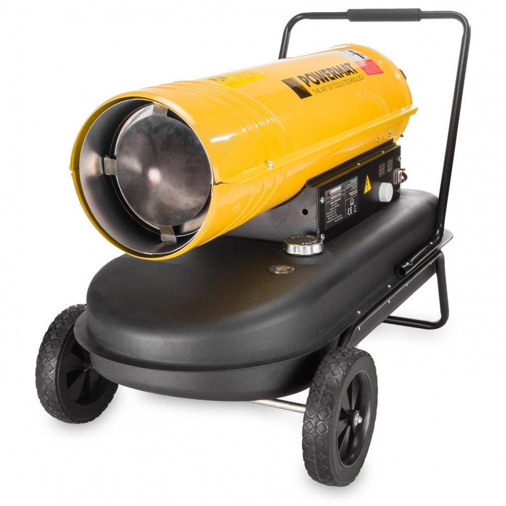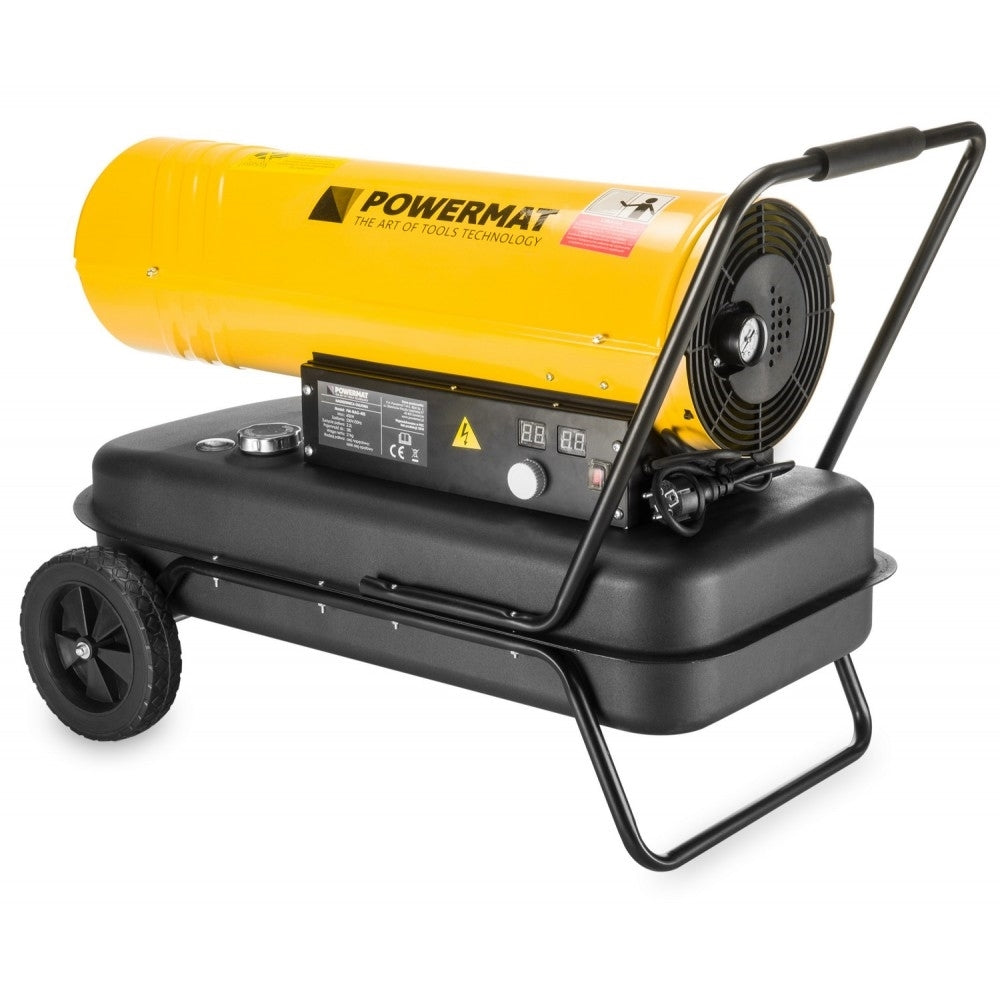Ventilatorul forteaza fluxul de aer rece prin dispozitiv si il directioneaza catre iesirea incalzitorului. Combustibilul preluat din rezervor este injectat prin duza intr-o camera de combustie inchisa, unde electrodul declanseaza aprinderea. Energia termica este transferata in aerul care inconjoara schimbatorul si este eliminata din incalzitor sub forma unui flux uniform de aer curat si cald.