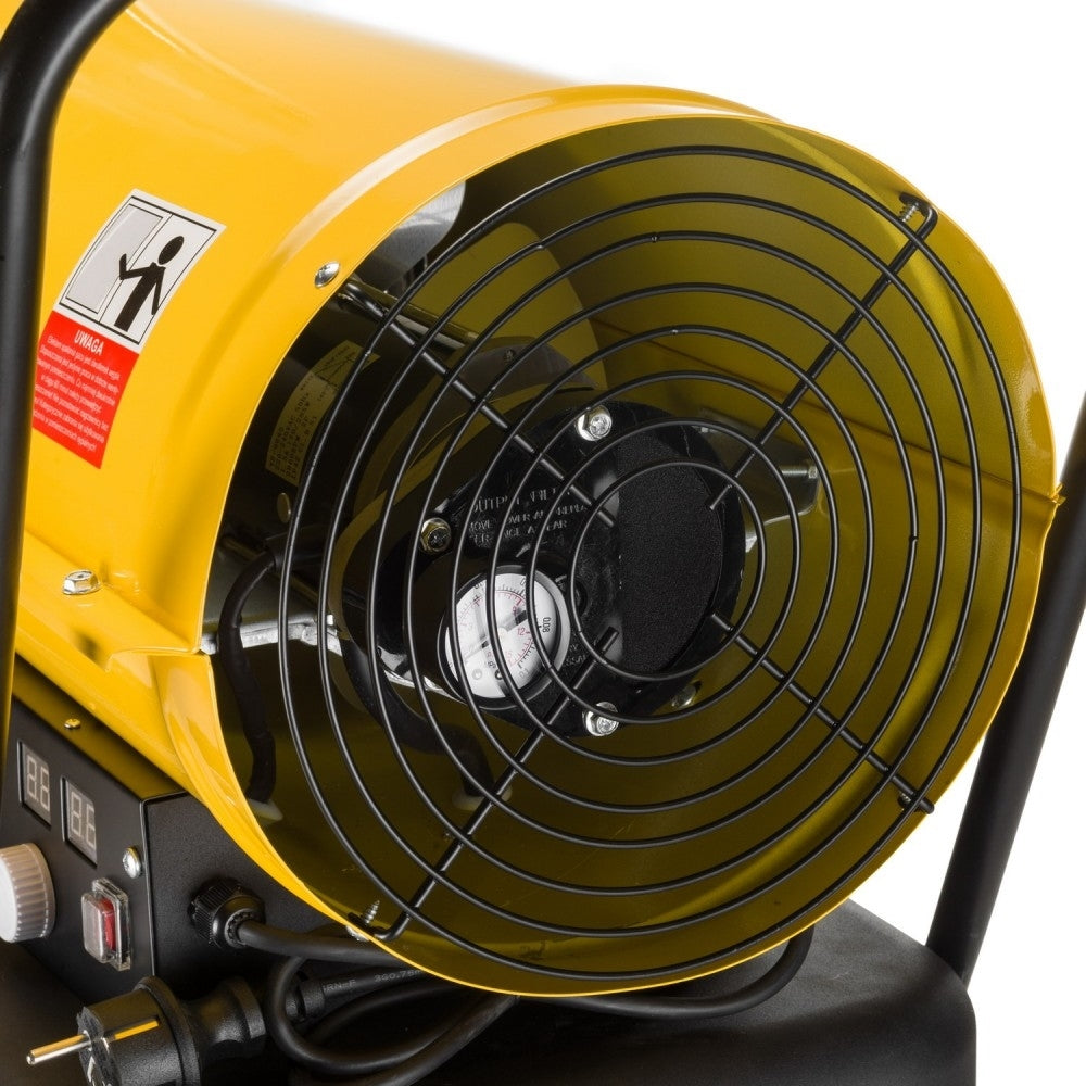 Incalzitorul este echipat cu un termostat digital cu control lin al temperaturii. Ofera eficienta termica ridicata si economie de combustibil. Cand temperatura setata este atinsa, numai incalzitorul este activat automat si apoi reporneste automat atunci cand temperatura scade sub temperatura setata pe afisaj. Acest lucru reduce consumul de combustibil si va permite sa mentineti o temperatura constanta adecvata in camera. Controlul electronic al temperaturii, doua afisaje: pentru setarea temperaturii de incalzire si afisarea temperaturii actuale. Avantajul incalzitorilor de petrol cu evacuare de gaze arse este, desigur, aerul incalzit complet lipsit de fum. Caracteristici precum disponibilitatea imediata de a incepe munca, simplitatea utilizarii si mobilitatea, care permite utilizarea unui dispozitiv in locuri diferite, le face aplicabile in aproape fiecare industrie. Incalzitoarele portabile cu descarcare de gaze arse sunt deosebit de populare in sectoare precum lucrari de constructii si renovari, agricultura, ateliere si depozite, evenimente ocazionale, situatii de criza si chiar operatiuni militare pe teren.