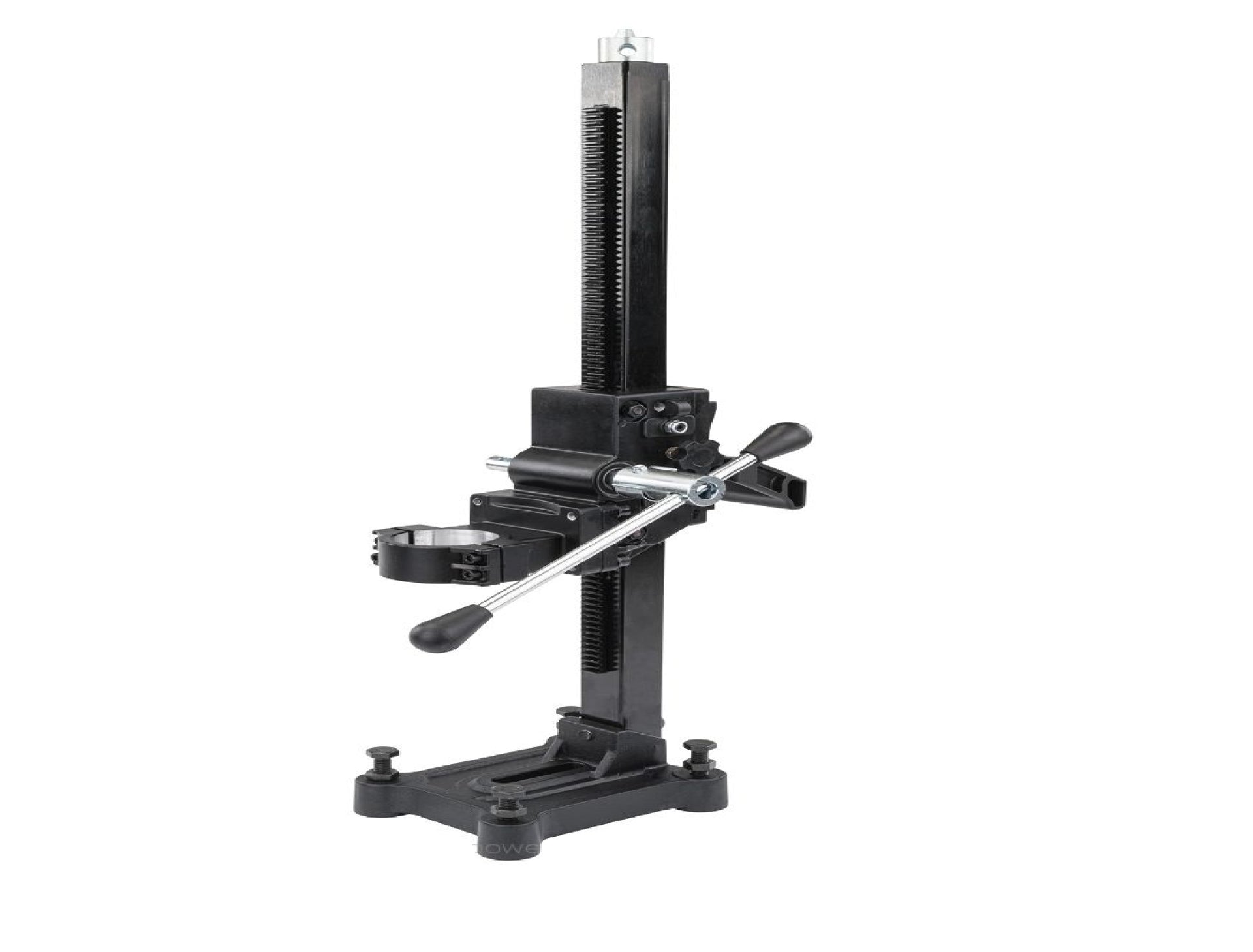 Suportul de burghiu cu diametrul de 1 ¼ inch este unul standard care se potriveste tuturor burghiilor disponibile pe piata. Aparatul vine cu un trepied cu un angrenaj care permite gaurirea in materiale dure, precum granit sau beton, fara a fi nevoie de a folosi forta.