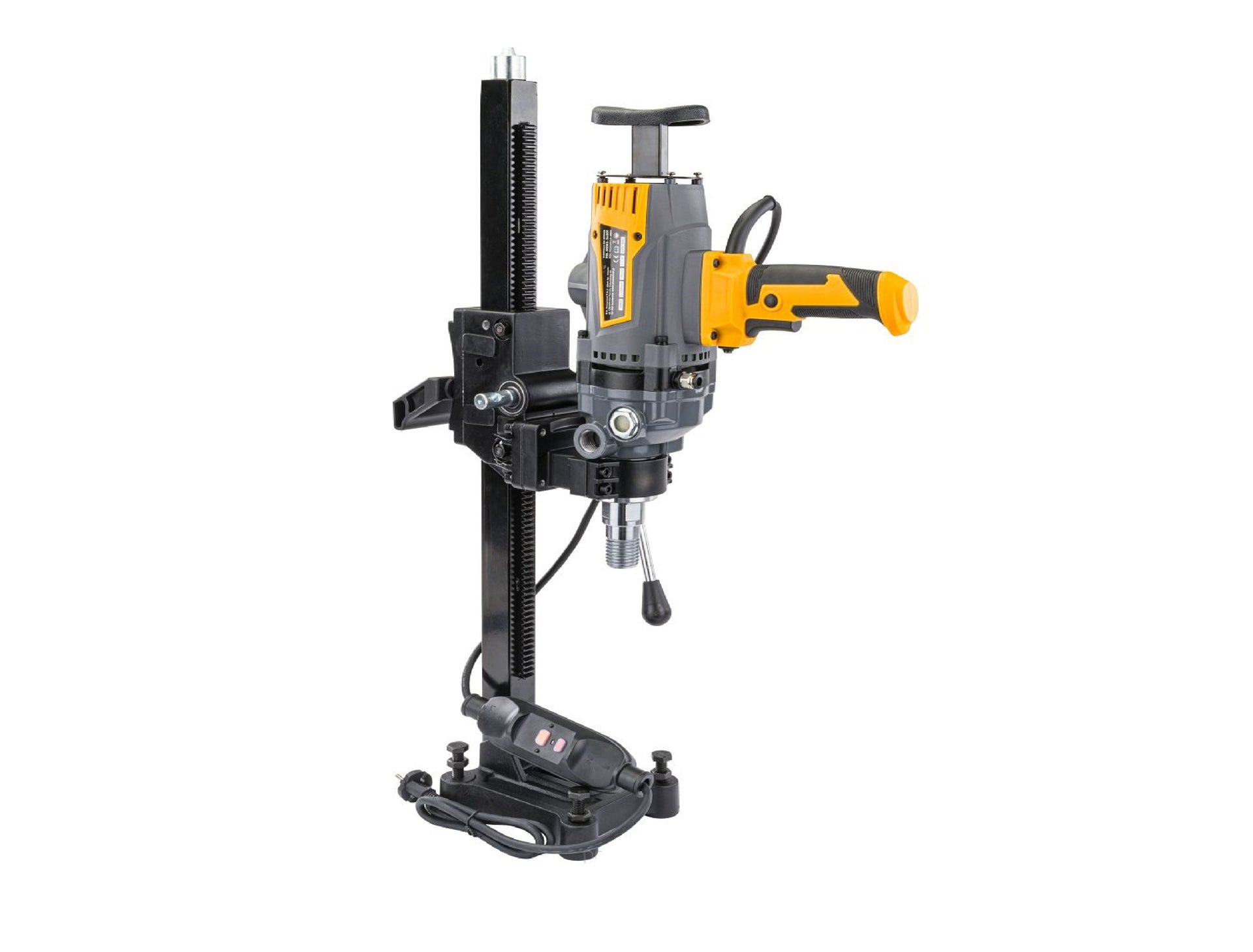 Instalatia de foraj pentru beton POWERMAT cu o putere de 2600 W este o unealta conceputa pentru gaurire, printre altele: umed, ceea ce mareste siguranta utilizarii si eficienta in comparatie cu modelele concurente. Aparatul atinge o viteza de 1.500 de rotatii pe minut , iar burghiul este montat pe un suport cu diametrul de 1 ¼ inch . Va permite sa faceti gauri cu un diametru maxim de 195 mm. Instalatia de foraj POWERMAT este un dispozitiv durabil care ofera rezultate rapide in conditii dificile. Setul include accesorii practice precum trepied, suport de umar si suruburi de montare.