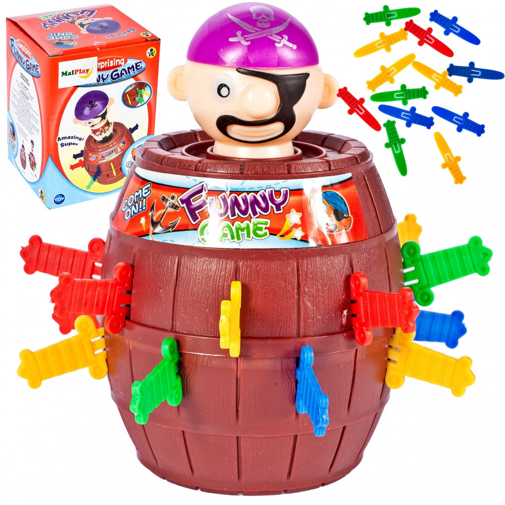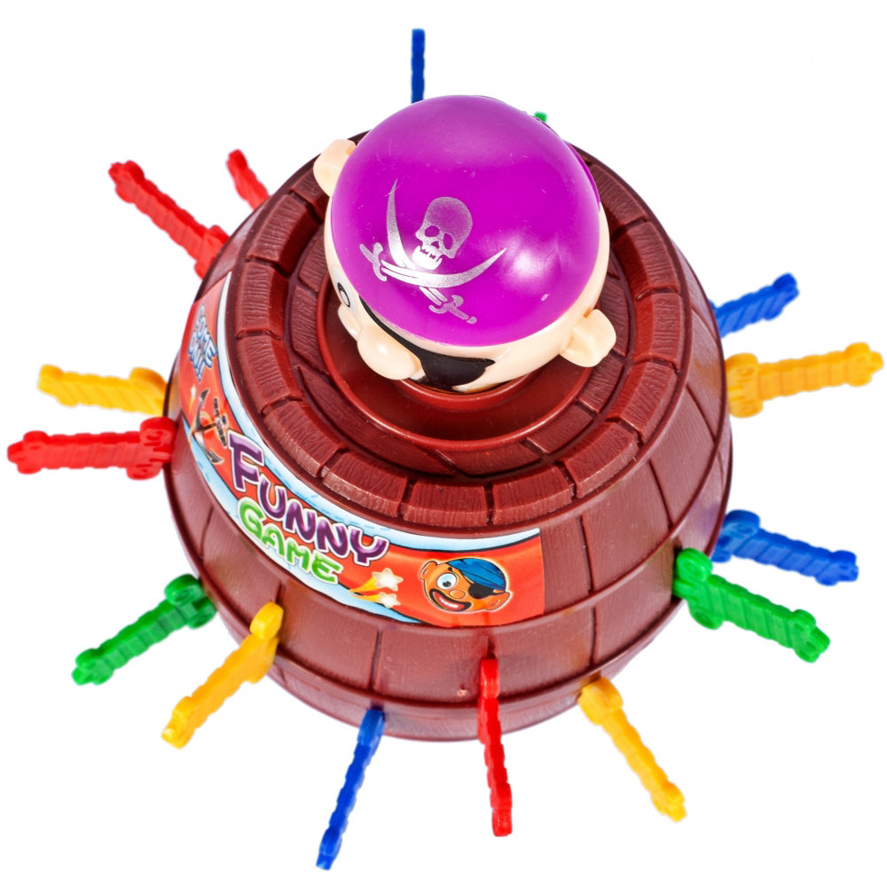 Jocul consta in introducerea unei sabii in gaurile selectate din butoi. Daca o faci incomod, piratul va scapa din butoi si vei ... juca! Jocul necesita dexteritate si creeaza o tensiune extraordinara. Una dintre cele mai eficiente modalitati de a dezvolta abilitati interpersonale la copii este sa joci diferite jocuri cu cei dragi. Jocurile de masa sau de carti extind inteligenta, capacitatea de a te exprima eficient si de a comunica altora intentiile tale. Jocurile sunt, de asemenea, o modalitate excelenta de a ne distra impreuna !!! Datorita acestor jocuri, copiii pot petrece mai mult timp cu parintii lor.