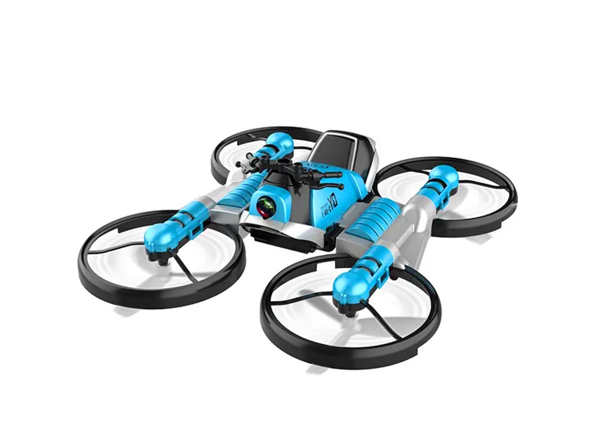 O drona care se transforma intr-o motocicleta . Jucarie cool realista cu care poti zbura pe cer si calari pe pamant cu telecomanda. Pentru a converti de la o motocicleta la un quadcopter, trebuie sa dezasamblati transformatorul, sa scoateti rotile si sa le instalati. Si invers. materiale.