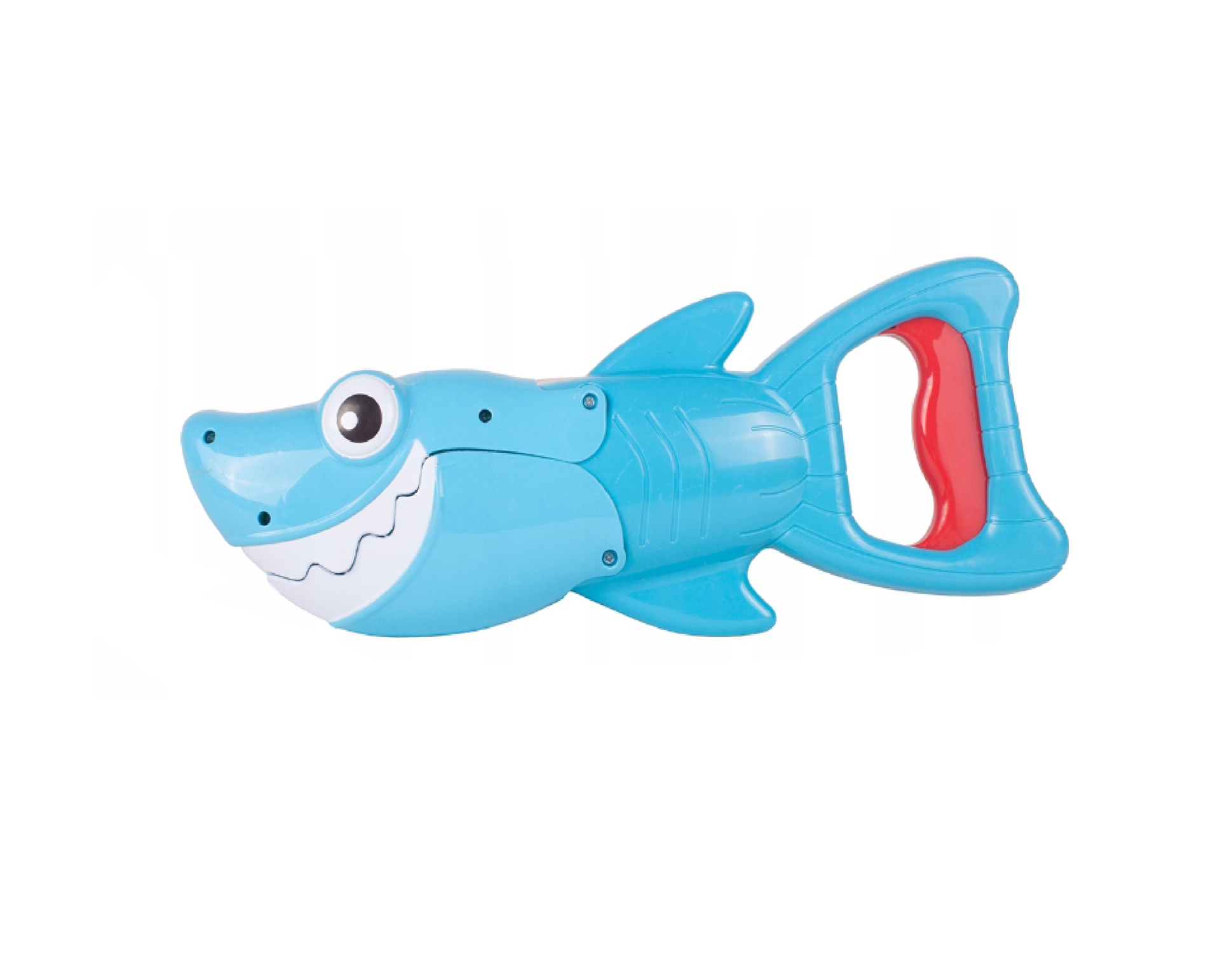 Mecanismul de deschidere a gurii rechinului este activat manual, dupa ce ai strans elementul rosu de pe coada rechinului cu mana.