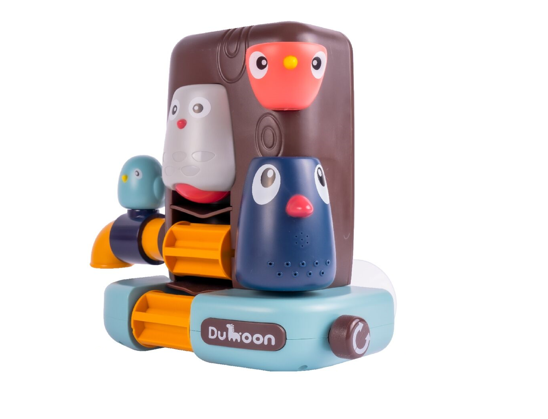 - Ciocanitoarea cenusie – are in fund un set de gauri prin care apa curge ca printr-o strecuratoare, imita un dus bland. Apa curge din el dupa ce se roteste manivela din partea dreapta a jucariei.