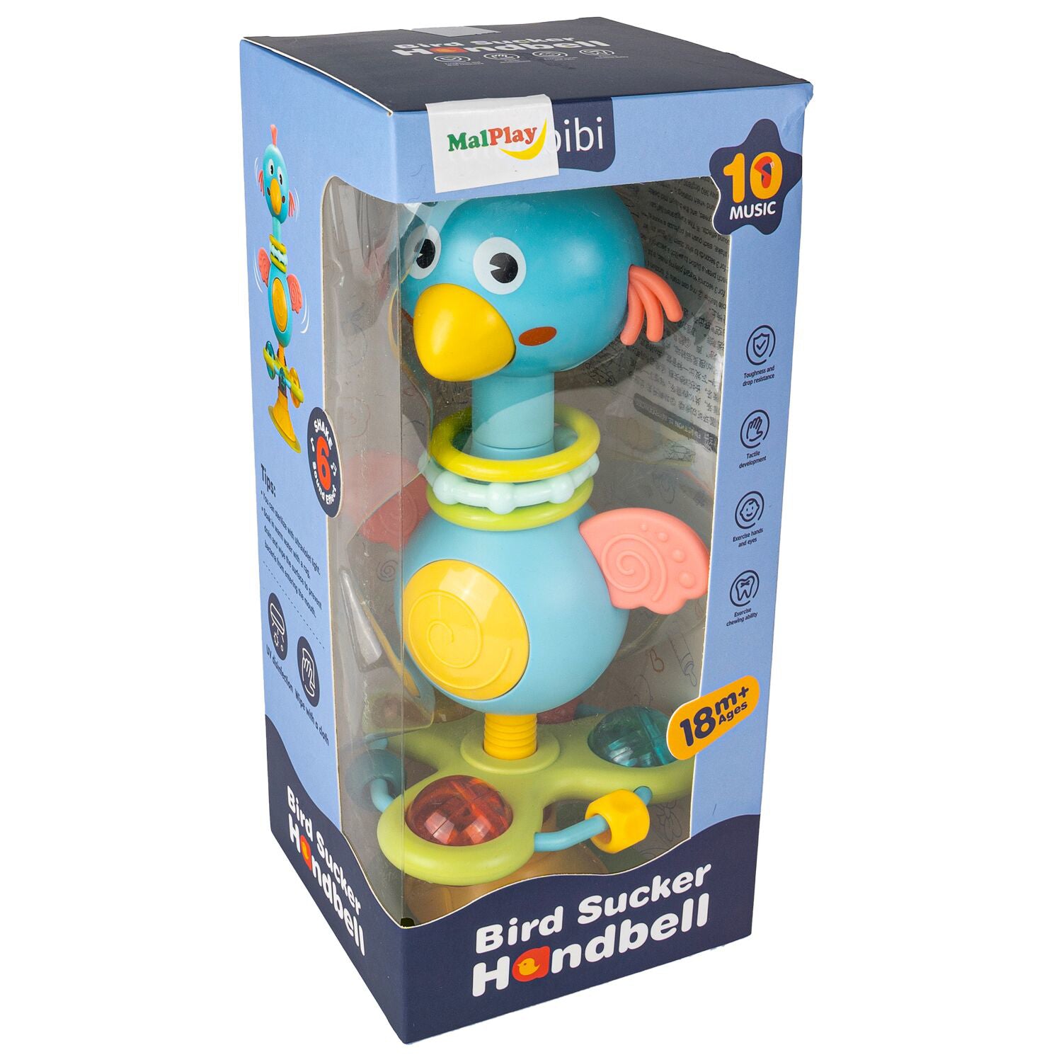 Pentru a porni sau opri jucaria, apasati si tineti apasat burta pasarii. Prin apasarea butonului poti schimba melodiile, iar prin miscarea elementelor zdranitoare vei activa unul dintre cele sase sunete diferite.