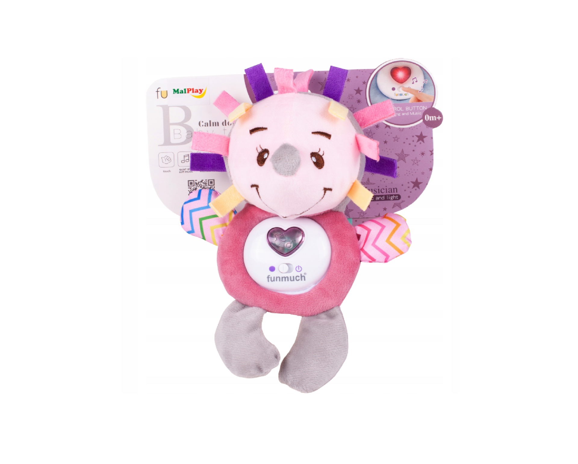 Jucaria noastra emite melodii linistite si este realizata din material moale, datorita caruia va fi perfecta ca o jucarie dragalas. Avand-o cu tine, bebelusul adoarme mai repede, simtindu-se in siguranta.
