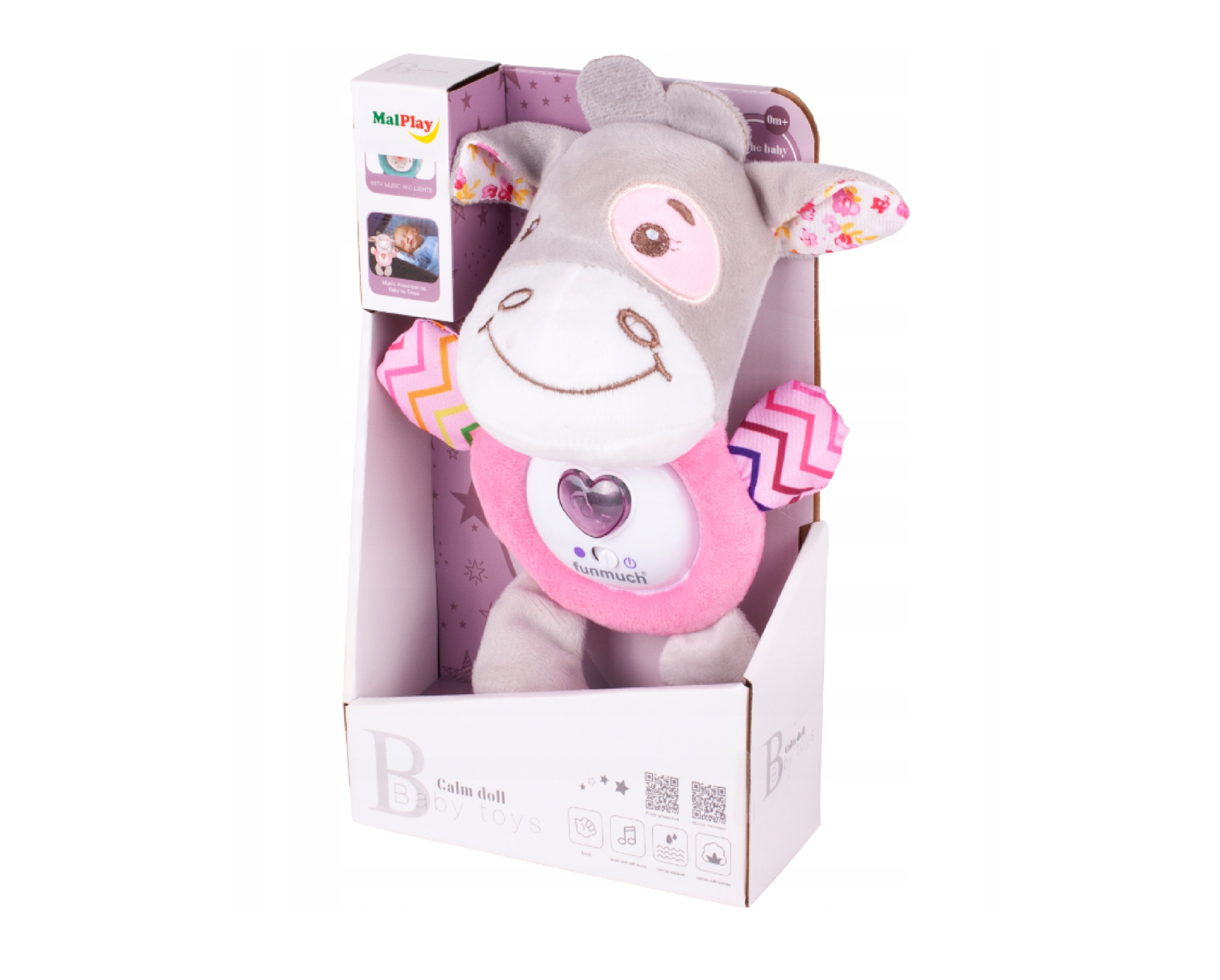 Jucaria noastra emite melodii linistite si este realizata din material moale, datorita caruia va fi perfecta ca o jucarie dragalas. Avand-o cu tine, bebelusul adoarme mai repede, simtindu-se in siguranta.