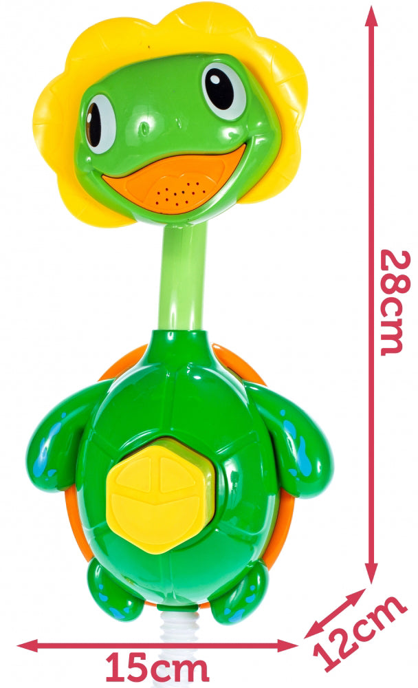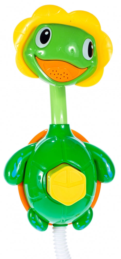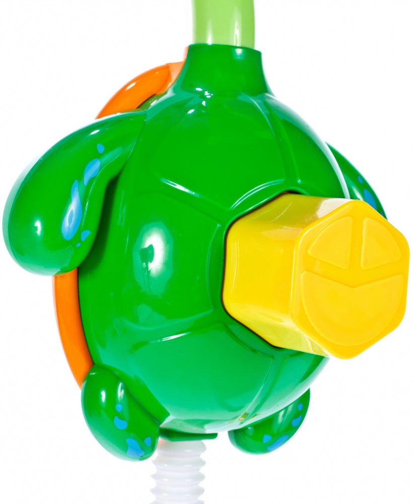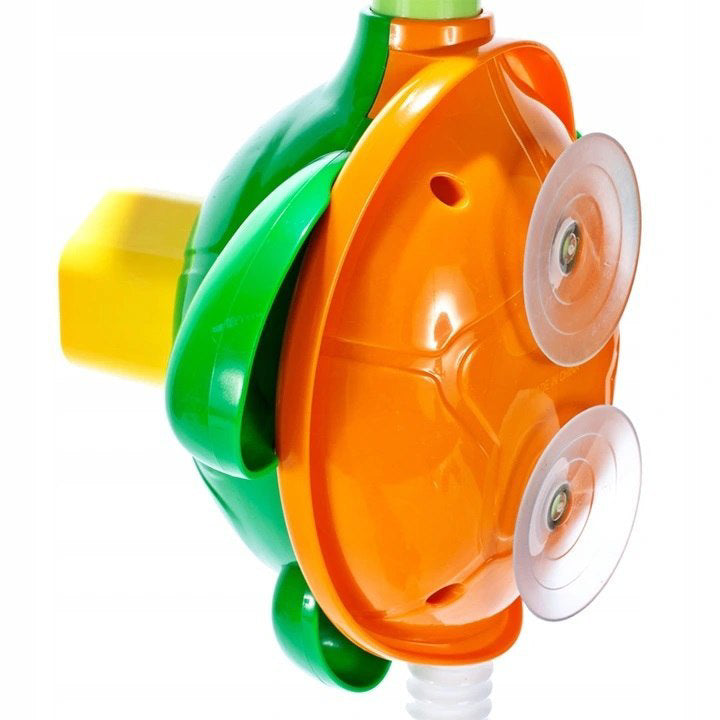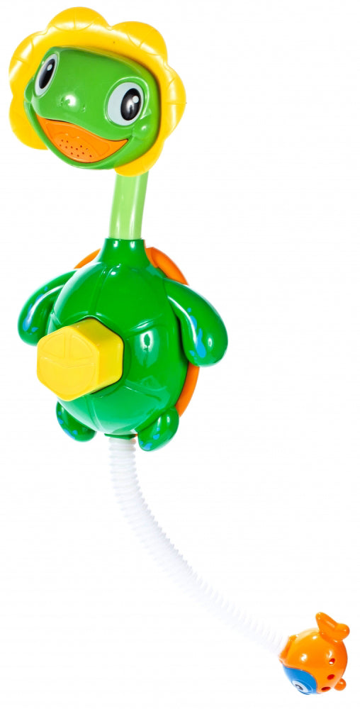 O jucarie care va face fiecare baie mai placuta. Fabricata din materiale sigure, jucaria va face baia zilnica mai atractiva si va incuraja fiecare copil sa se joace. Jucaria este echipata cu ventuze care faciliteaza montarea ei in cada. Cand apasam butonul galben mare de pe burtica testoasei, apa incepe sa fie pompata, datorita careia apa iese din varful jucariei.