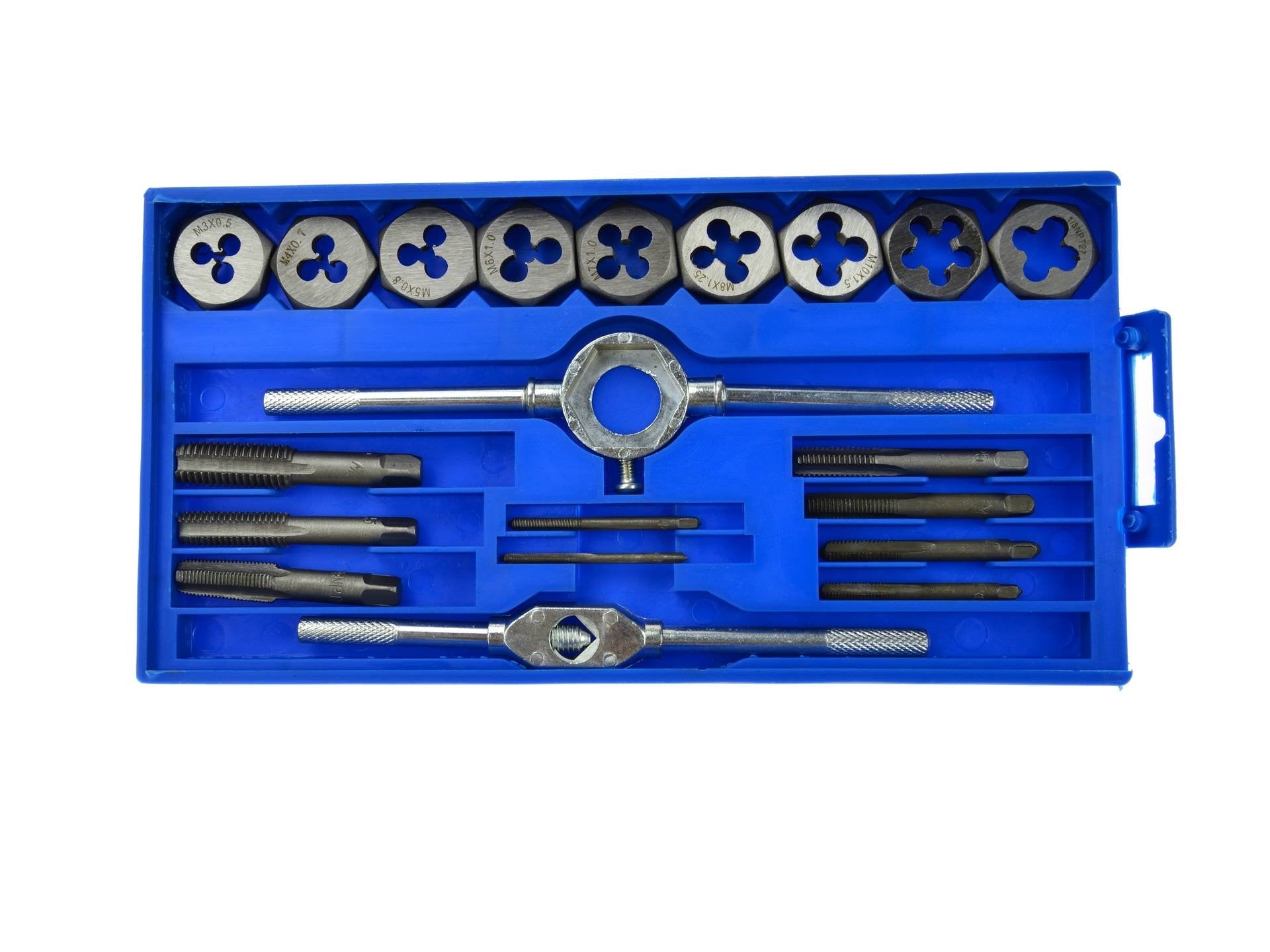 Set de tarozi și filiere de 20 de piese din oțel aliat de înaltă calitate. Setul este ambalat într-o cutie la îndemână fabricată din plastic, care facilitează transportul matrițelor și vă permite să păstrați ordinea.