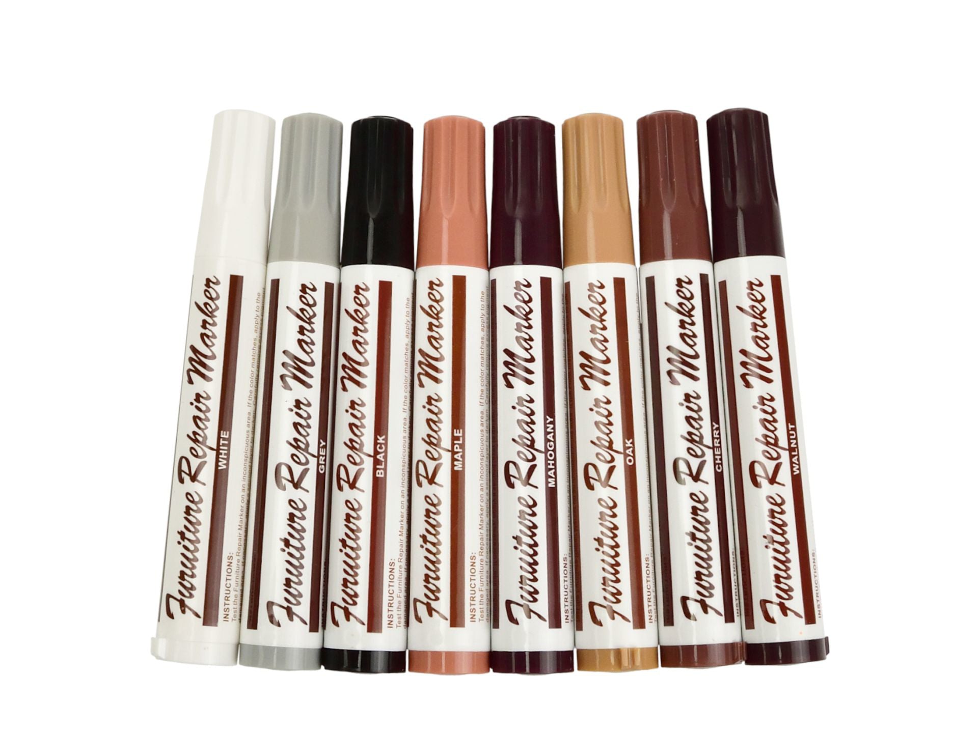 Setul va permite sa mascati fisurile, slipurile, etc intr-un mod estetic si ieftin.Setul include 8 culori de markere si 8 creioane de ceara in aceleasi culori . Repararea suprafetei deteriorate se efectueaza in doua etape, mai intai, umpleti defectul cu un creion de ceara semi-dur intr-o culoare selectata corespunzator, apoi acoperiti acest loc cu markere de ulei pentru a crea o structura asemanatoare lemnului.