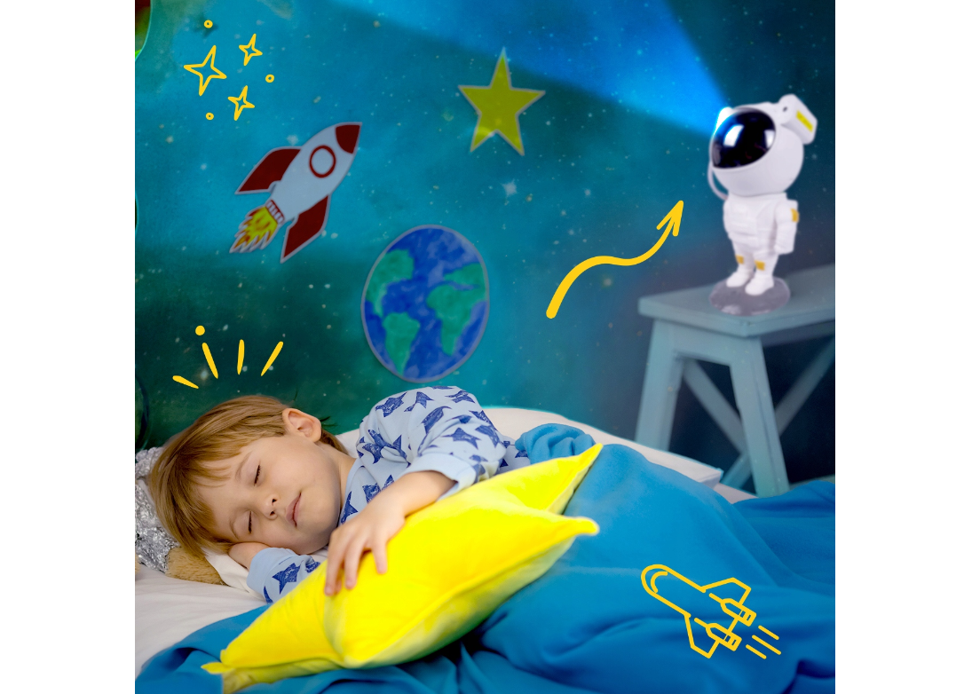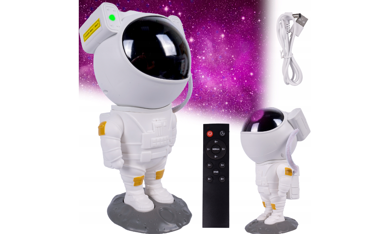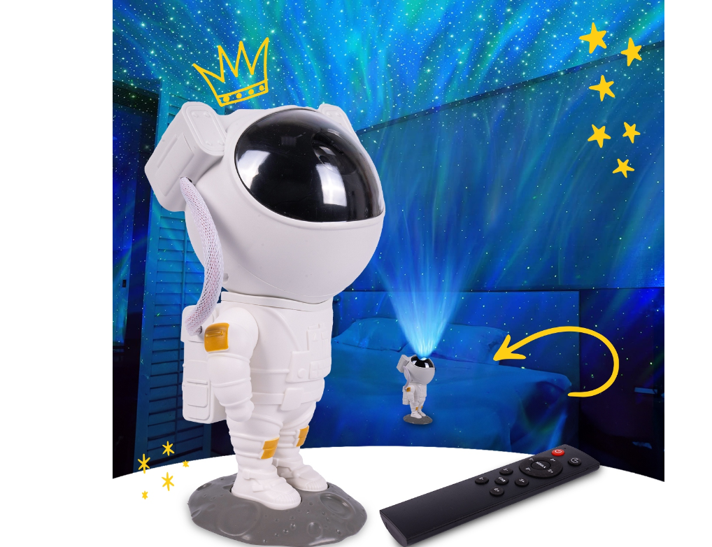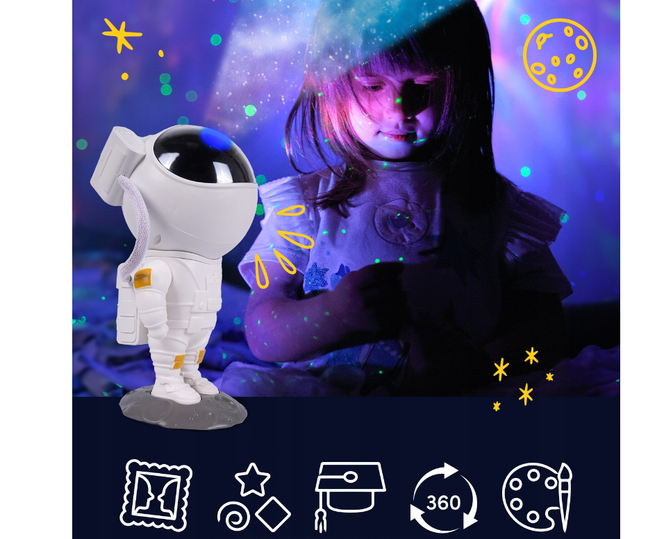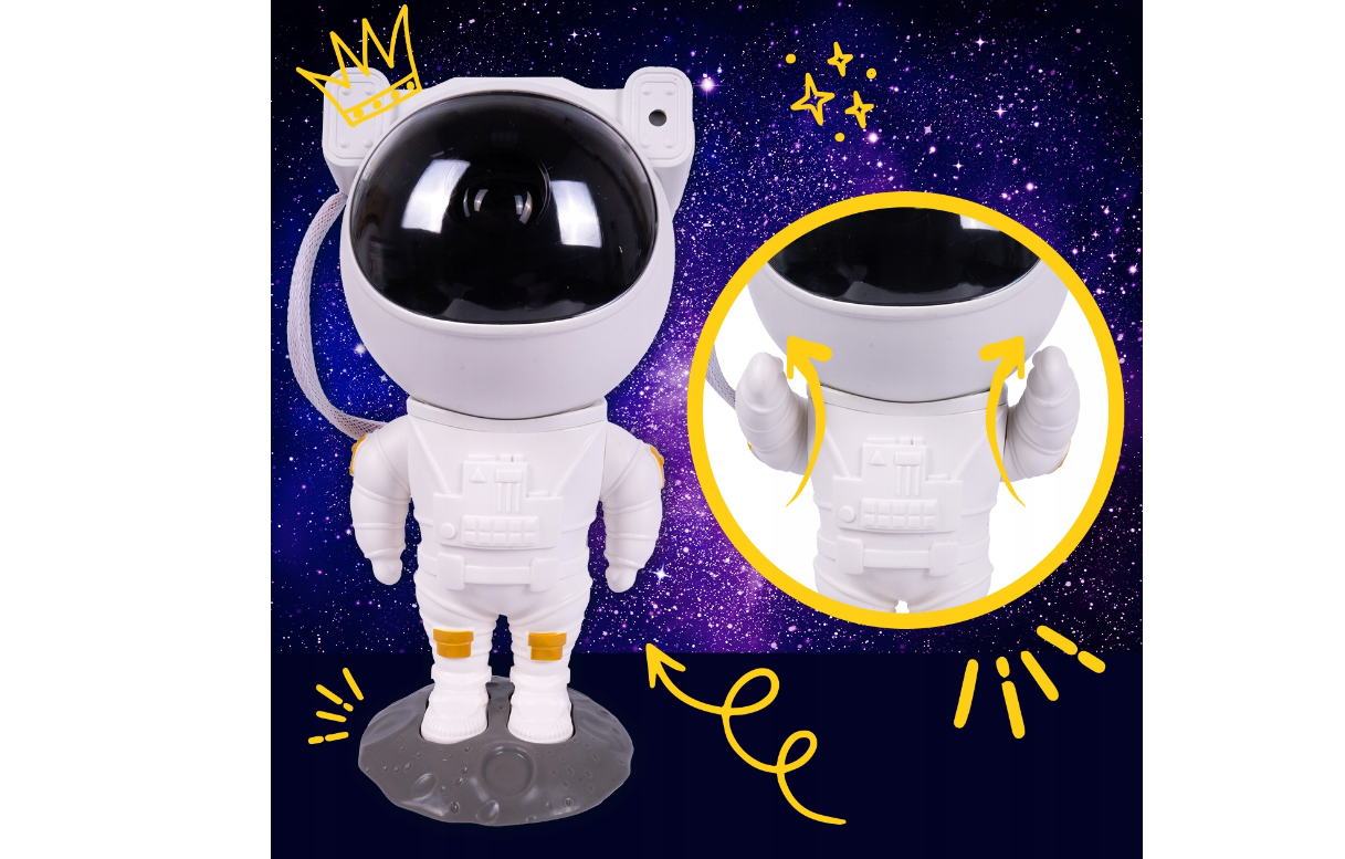 Proiectorul de stele in forma de astronaut este solutia perfecta pentru copiii carora nu le place sa doarma in intuneric. Datorita functiei confortabile de lampa de noapte, dispozitivul creeaza o atmosfera calma si relaxanta, ajutandu-i pe cei mici sa adoarma inconjurati de stele si galaxii magice.