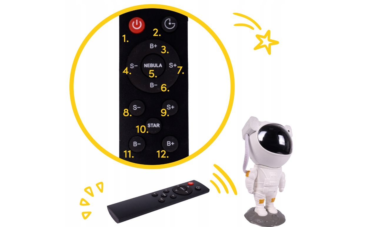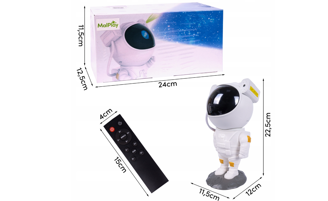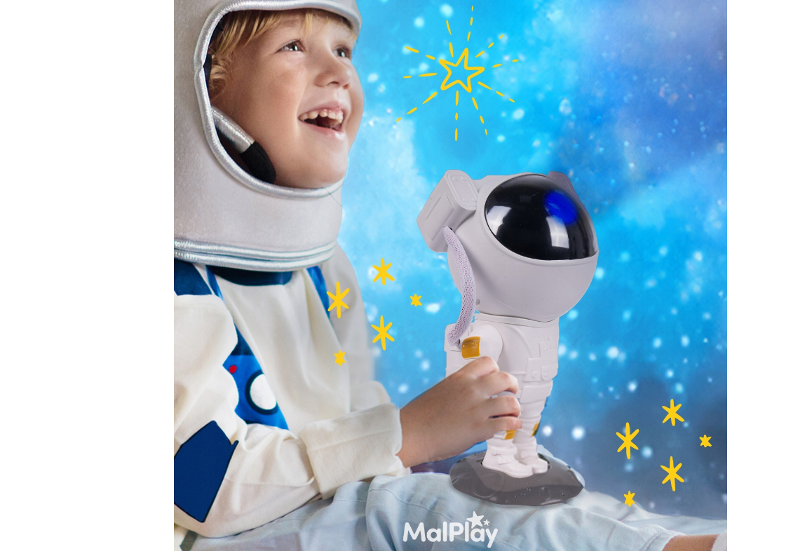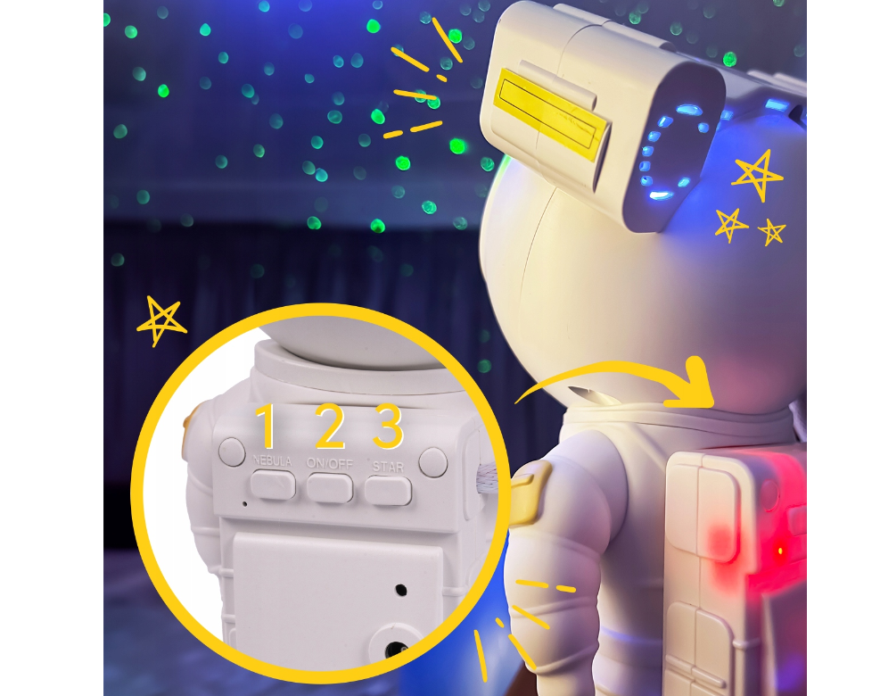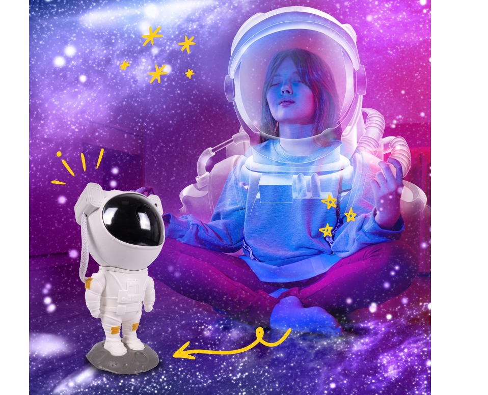 Proiectorul de stele in forma de astronaut este solutia perfecta pentru copiii carora nu le place sa doarma in intuneric. Datorita functiei confortabile de lampa de noapte, dispozitivul creeaza o atmosfera calma si relaxanta, ajutandu-i pe cei mici sa adoarma inconjurati de stele si galaxii magice.