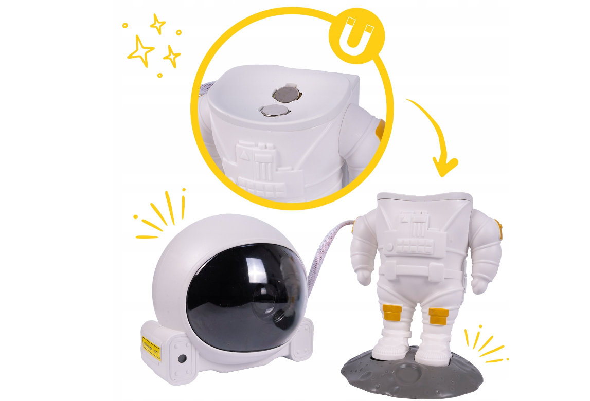 Capul astronautului este atasat cu ajutorul unui magnet plasat in corpul lampii. Datorita acestui lucru, puteti regla unghiul si locul luminii de la proiector!