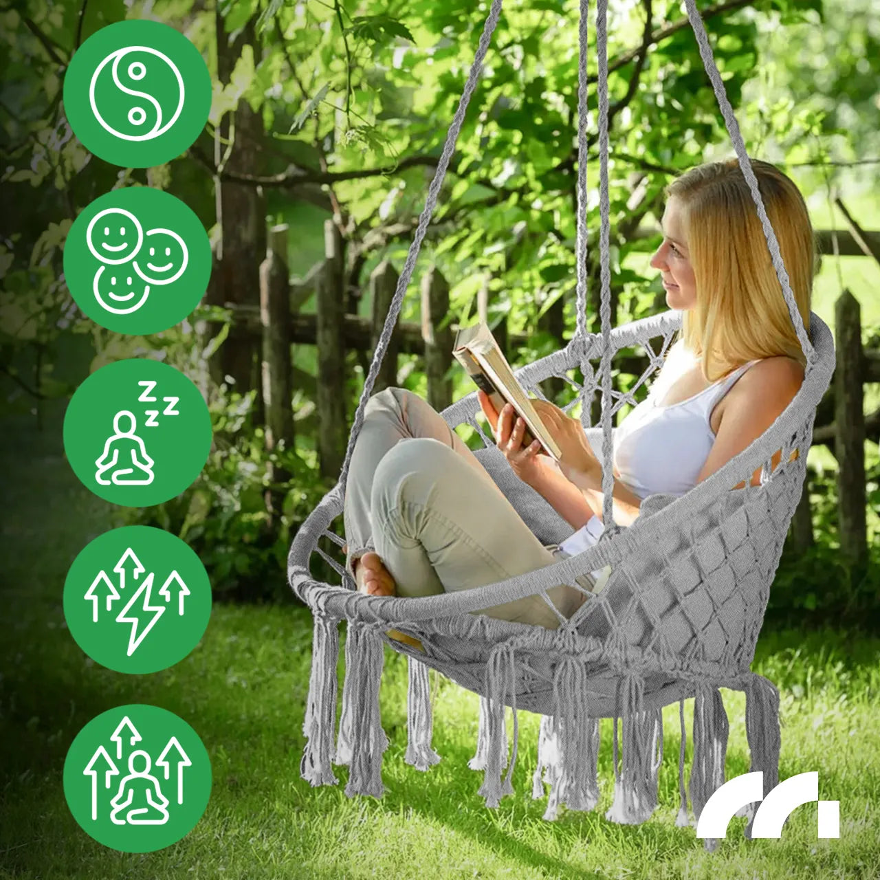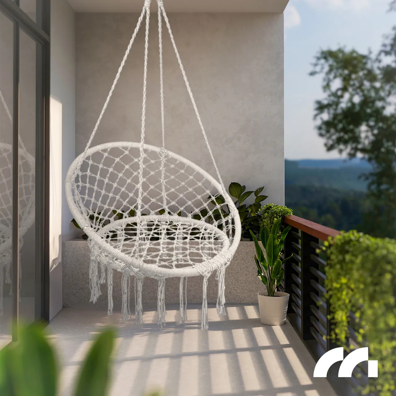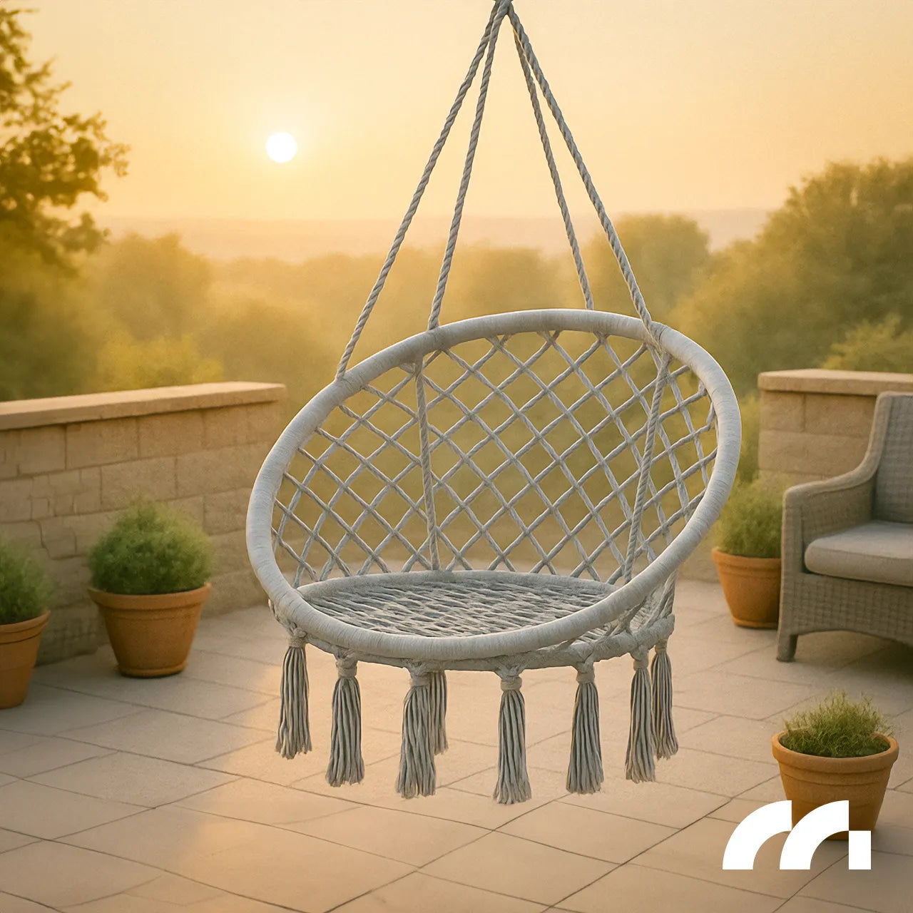 Fotoliul suspendat ofera oportunitatea de a-ti crea propriul refugiu plin de frumusete, confort si inspiratie, invitandu-te sa creezi momente de neuitat inconjurat de natura si design estetic.