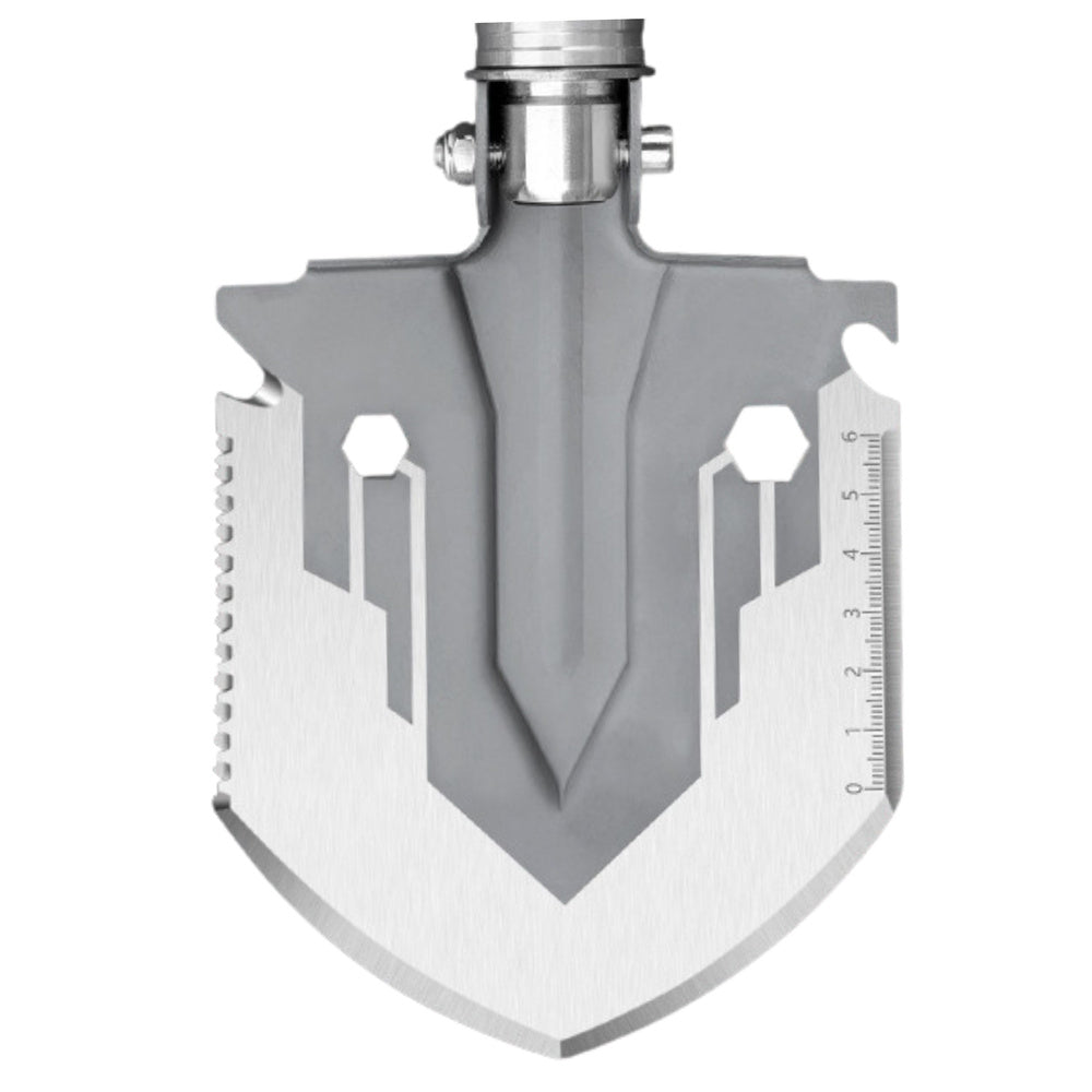 Aceasta lopata multifunctionala este fabricata din otel de inalta calitate, iar manerul sau modular, realizat dintr-un aliaj de aluminiu durabil, nu numai ca ofera o prindere confortabila, dar poate fi folosit si ca baston pentru autoaparare. Lopata este formata din trei segmente, fiecare lung de aproximativ 17 cm, asa ca atunci cand este pliata, ocupa foarte putin spatiu - doar 25 cm lungime. Cand este desfacuta, atinge o lungime de 68 cm, asigurand o munca confortabila si ergonomica.
