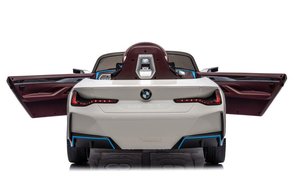 Masinuta electrica copii BMW I4 4x4, culoare alba, cu licenta oficiala BMW, destinata copiilor cu varsta intre 3 si 6 ani. O replica fidela a modelului real, cu tractiune integrala si functii multimedia.