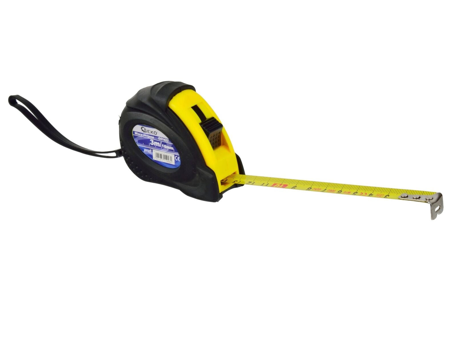 Banda de masurare profesionala, banda de otel cu blocare dubla . Banda de 3 m lungime si 16 mm latime. Banda de otel carbon se termina cu un carlig solid de masurare. Carcasa cupei de masurare este fabricata din plastic ABS cu capac de cauciuc. O scala neteda si lizibila face ca masurarea sa fie usor de citit. Buton de blocare cu operare degetul mare Buton de blocare suplimentar in partea de jos a masurii.