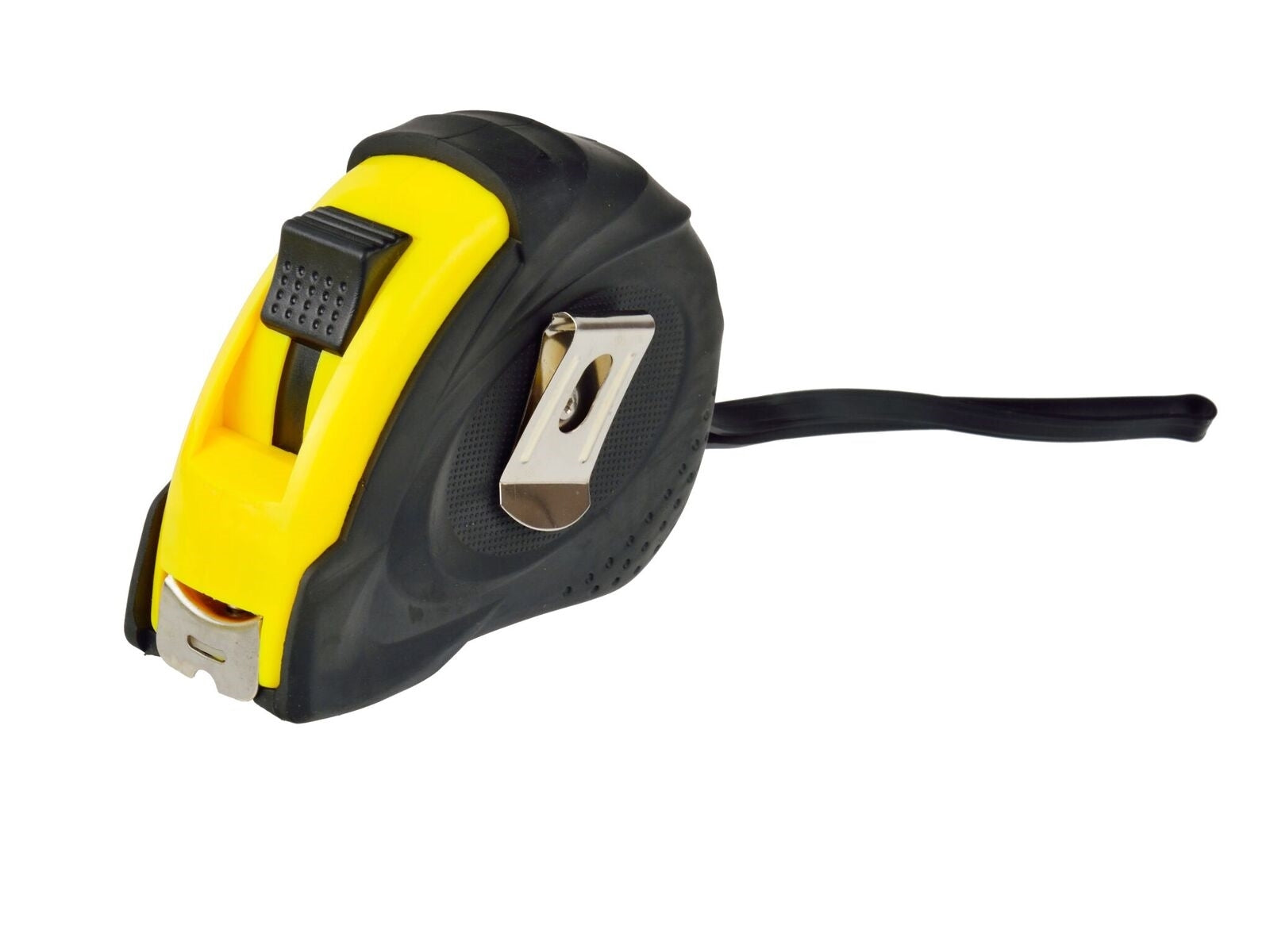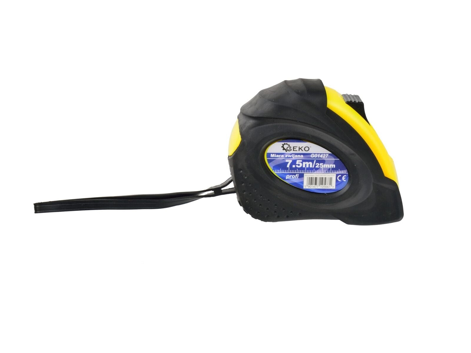 Banda de masura profesionala, banda de otel cu inchidere dubla. Banda are 7,5 m lungime și 25 mm lățime. Banda din oțel carbon are un cârlig de măsurare solid. Carcasa cupei de măsurare este realizată din plastic ABS cu capac de cauciuc. Scara netedă și lizibilă facilitează citirea măsurătorilor. Buton de blocare acționat cu degetul mare. Buton suplimentar de blocare în partea de jos a măsurii.