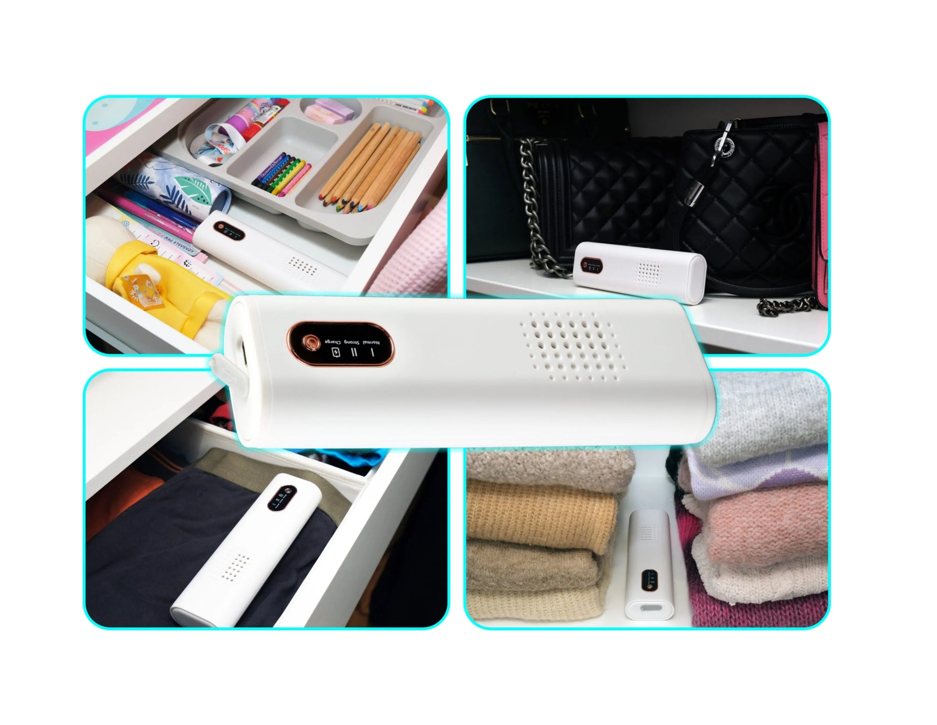- Design compact si portabil: Ideal pentru utilizare in frigider, dulap, baie, masina etc.
