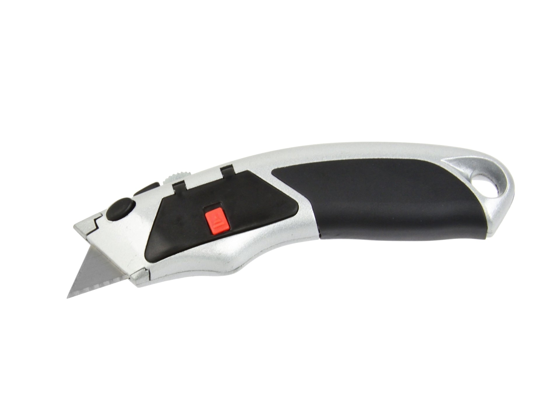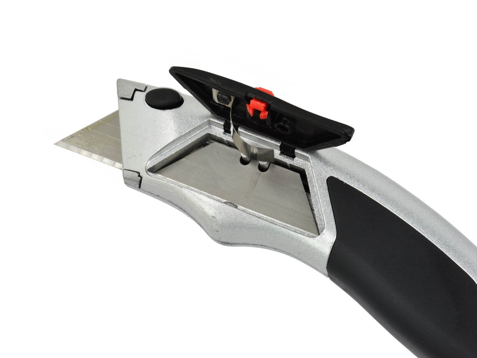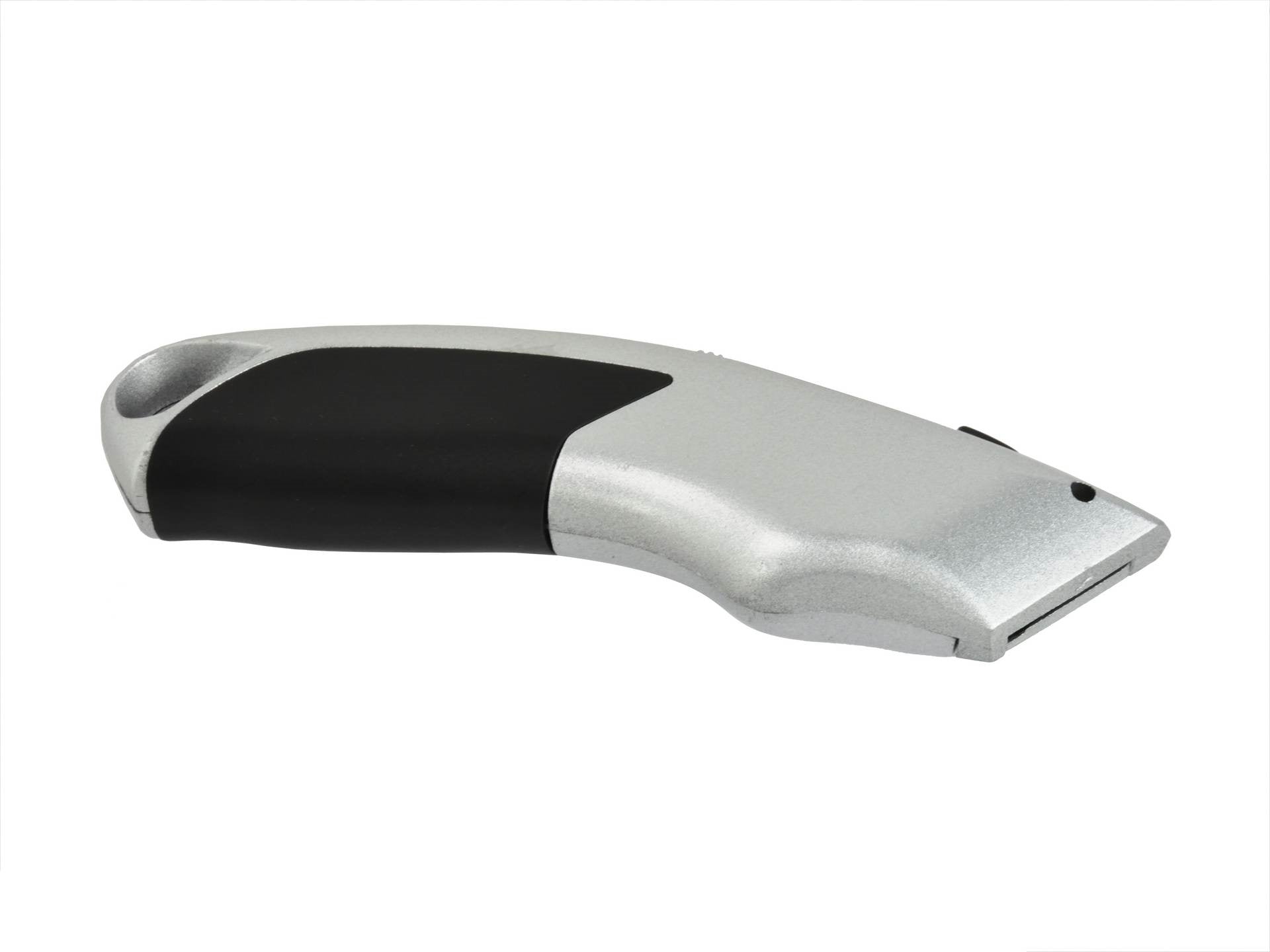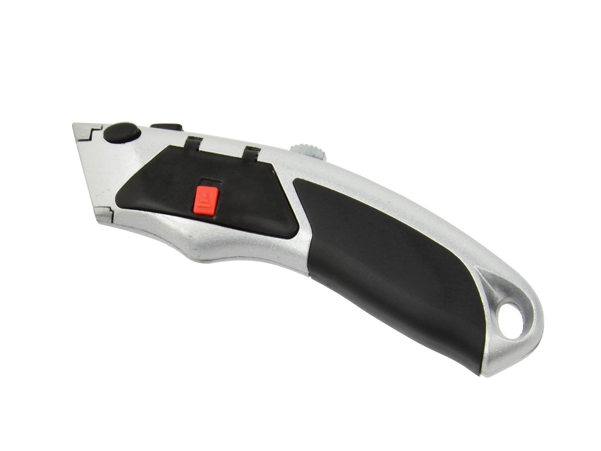 Cuțit uz universal în lamă trapezoidală de 19 mm. Cuțitul este realizat din aluminiu, mâner conturat acoperit cu cauciuc antiderapant. Cuțitul este echipat cu o magazie pentru lame. După ce folosiți o lamă și trageți ghidul înapoi, următoarea lamă se încarcă automat.