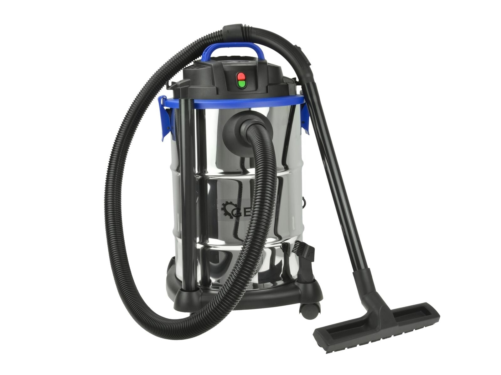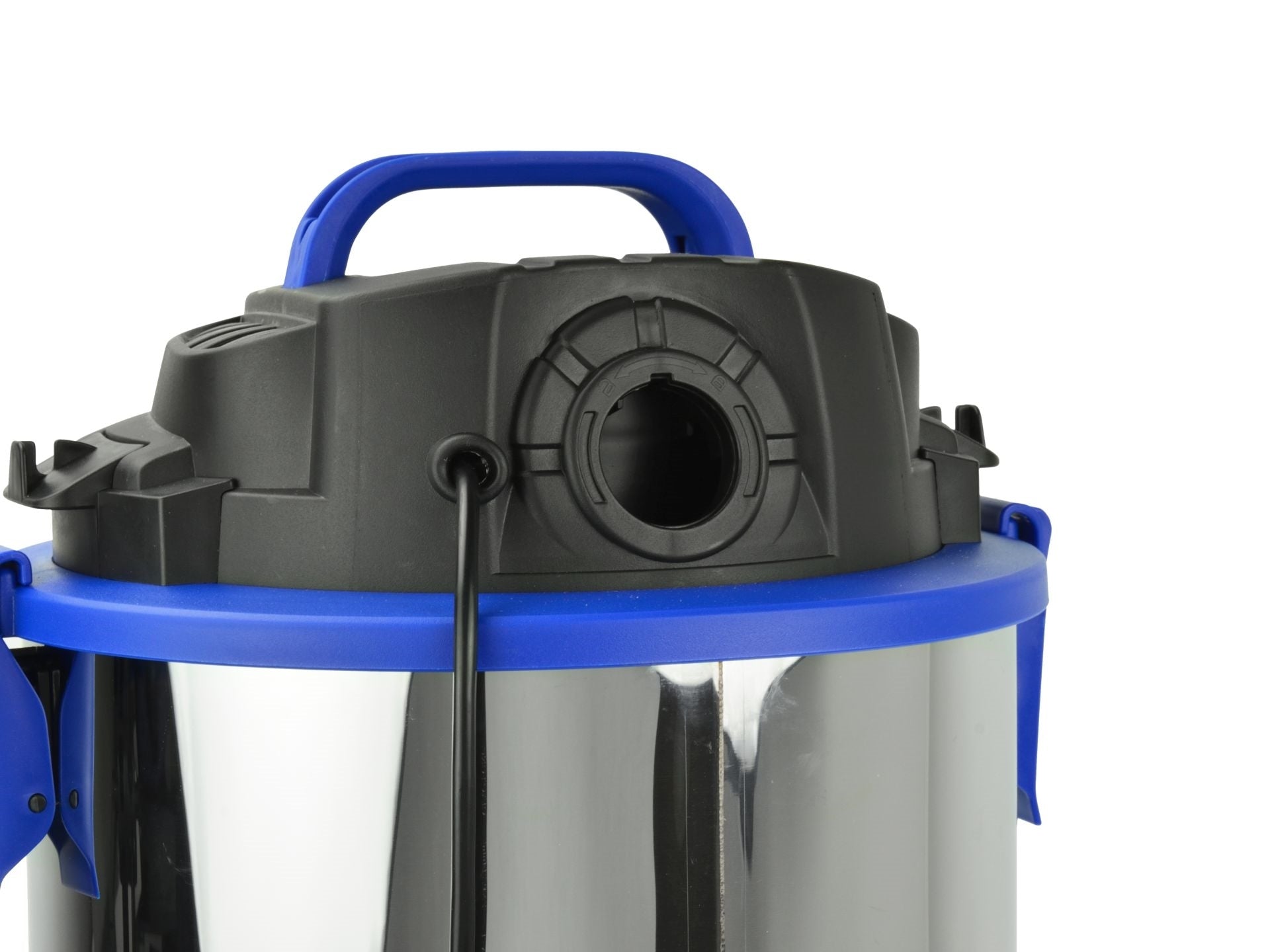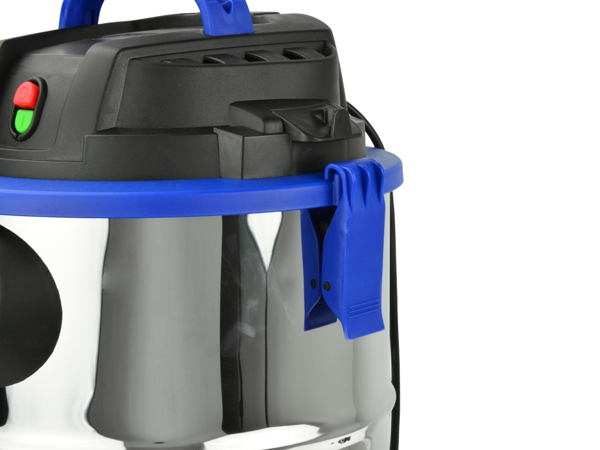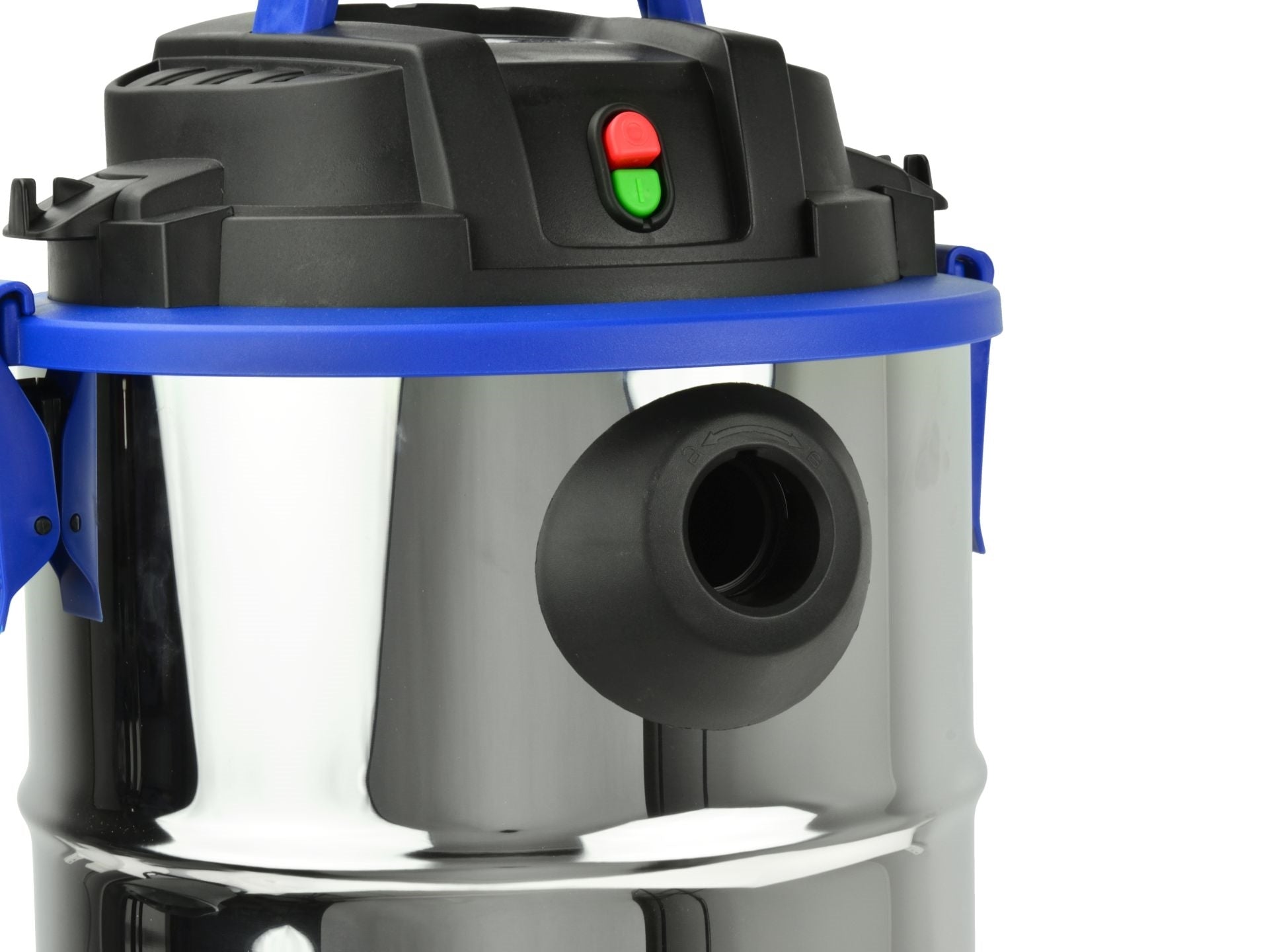 Rezervorul de 30 de litri este fabricat din oțel inoxidabil. O funcție suplimentară a aspiratorului este o suflantă care permite, evacuarea impurităților din locuri greu accesibile. Aspiratorul este echipat cu 4 rotițe pivotante care permit o mișcare ușoară cu dispozitivul.