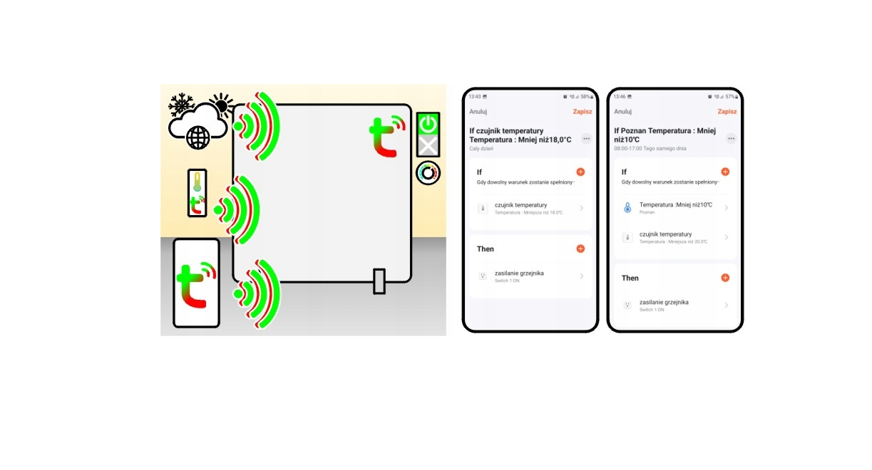 - posibilitatea de a programa setari si scenarii pentru pornirea si oprirea incalzirii pe baza semnalului informativ de la un senzor WiFi separat de temperatura si umiditate - Tuya (disponibil separat)