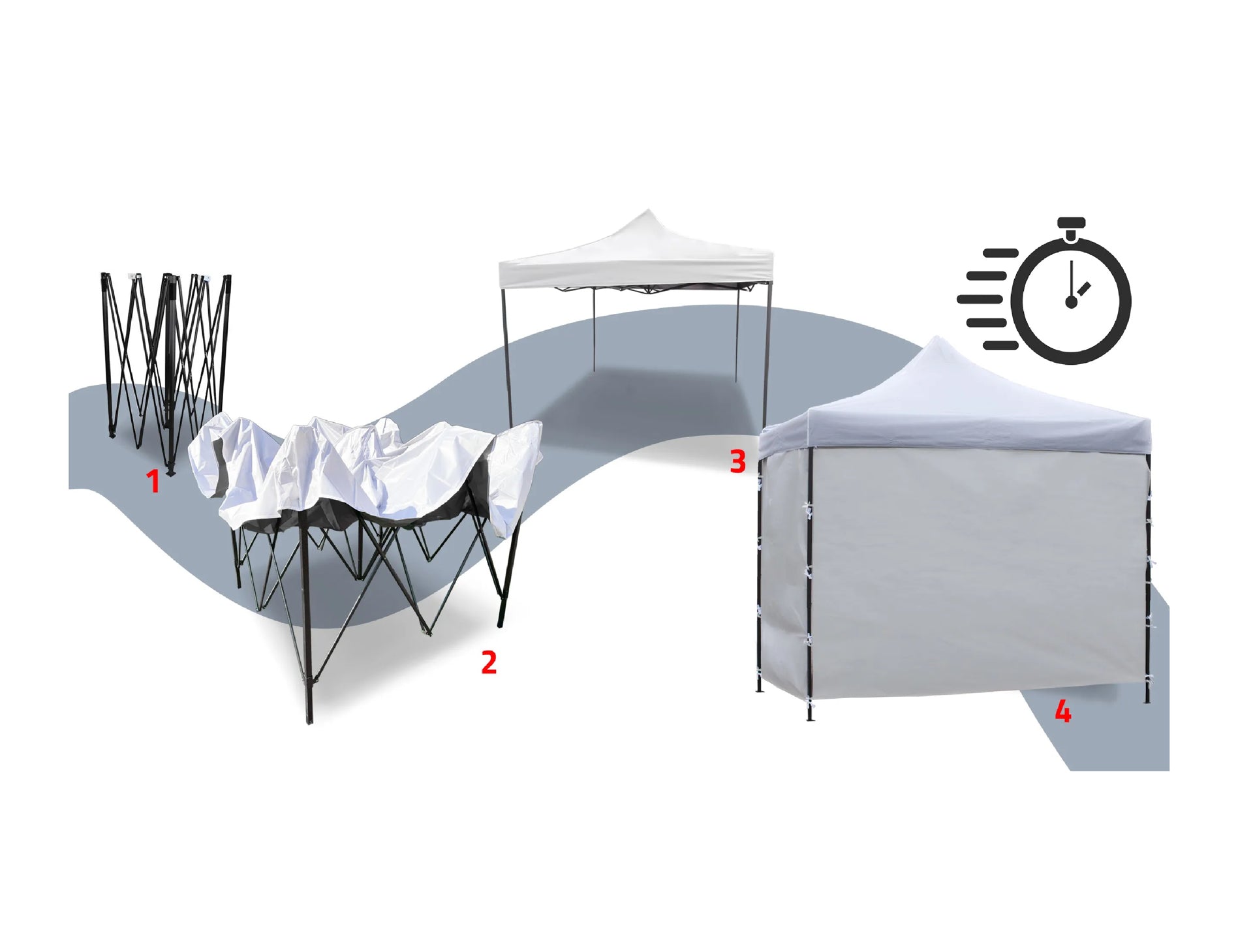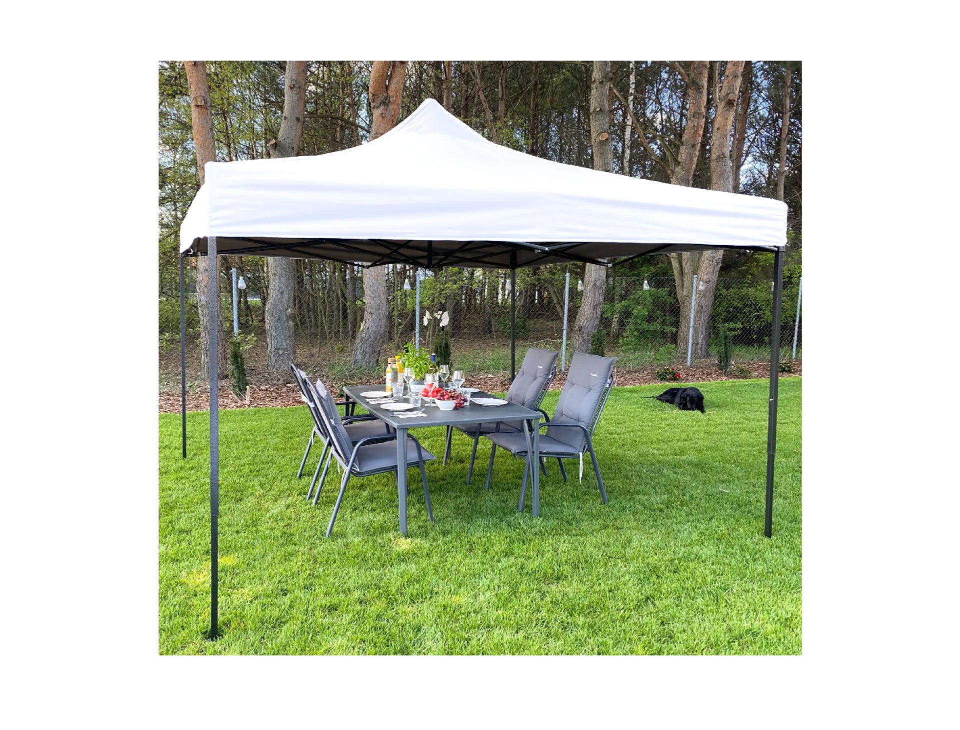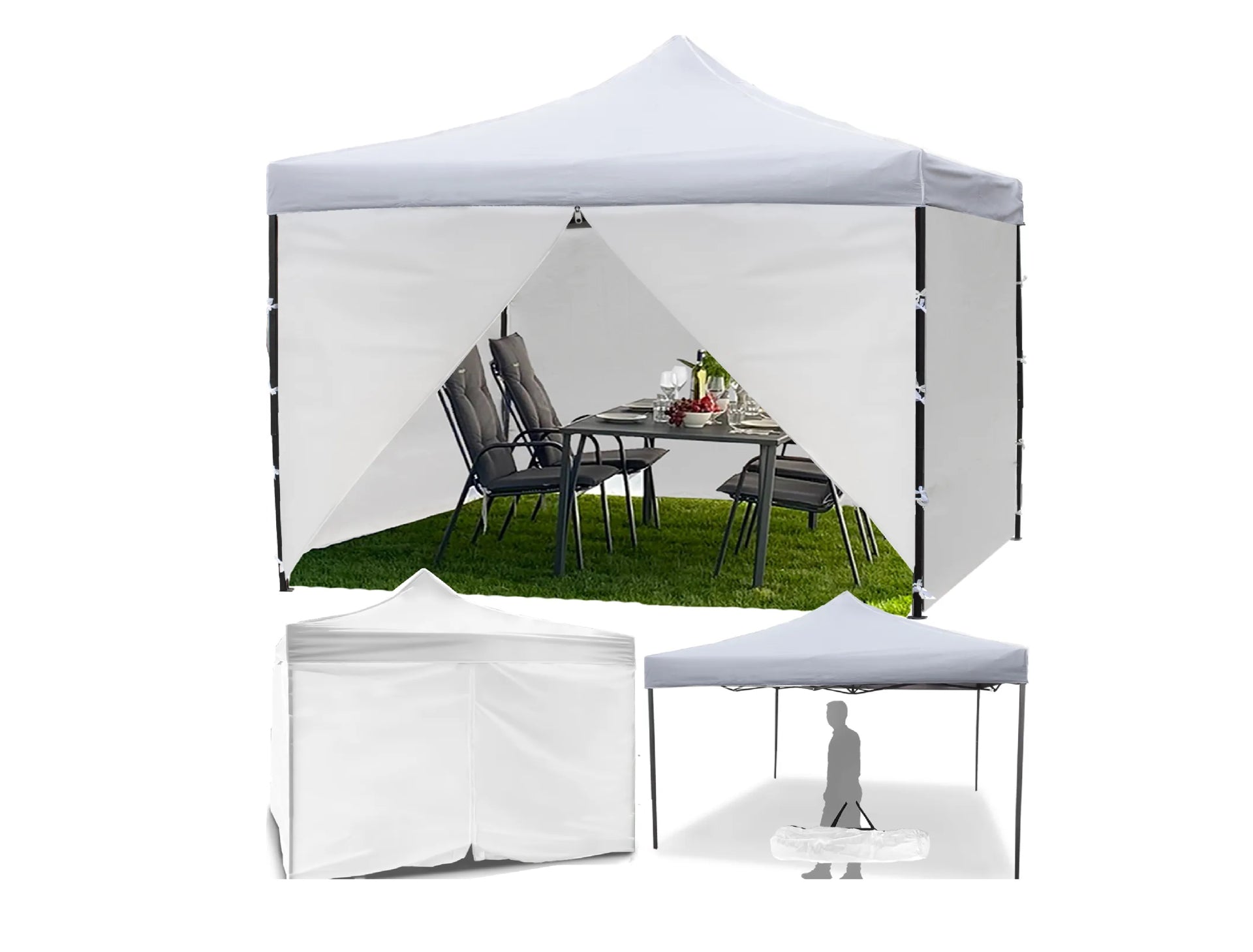 Pavilionul este foarte usor de asamblat si dezasamblat. Este nevoie de aproximativ o duzina de minute pentru a-l desfasura si nu necesita ajutorul altor persoane!