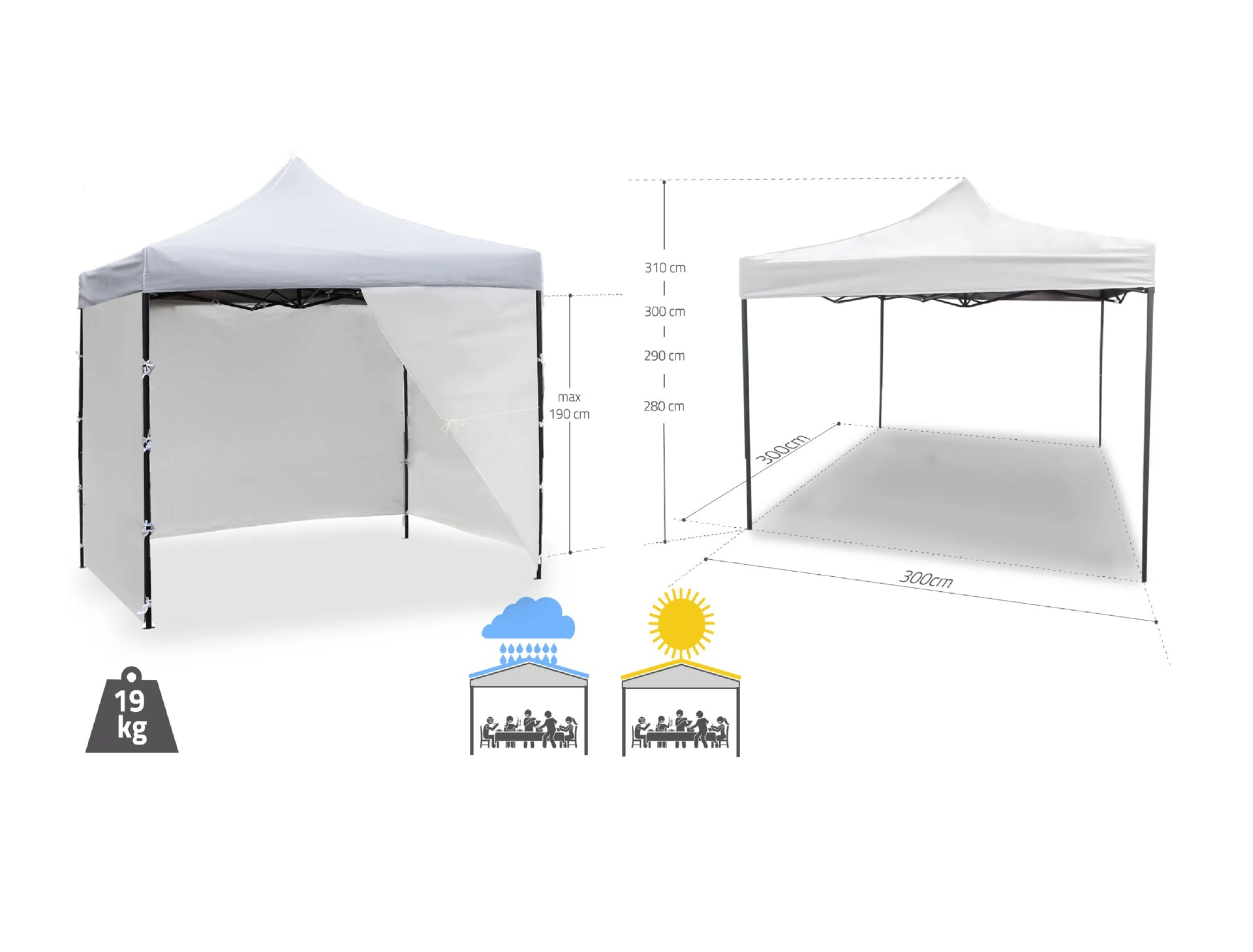 - Dimensiuni exterioare: 300 x 300 cm (lungime x latime)