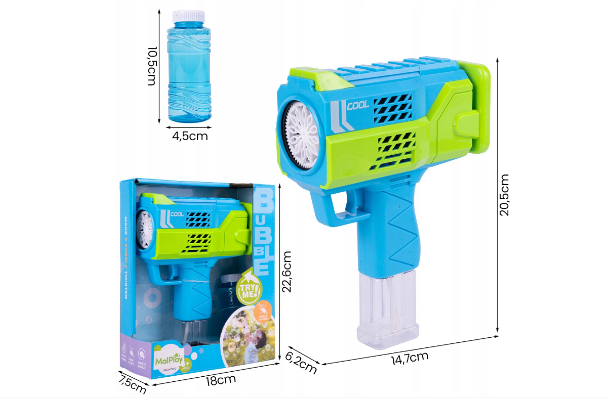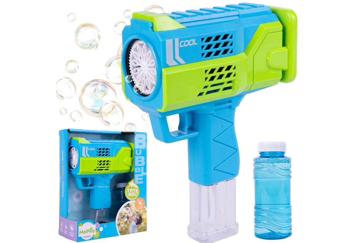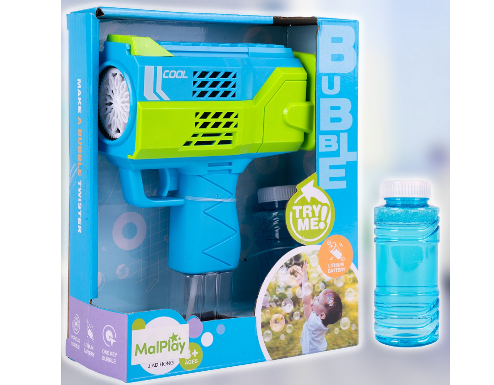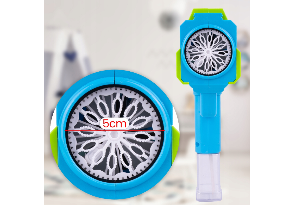O masina fantastica pentru a face bule de sapun in forma de super bazooka va aduce multa bucurie fiecarui copil. Admira zeci de bule de sapun curcubeu care plutesc in aer.