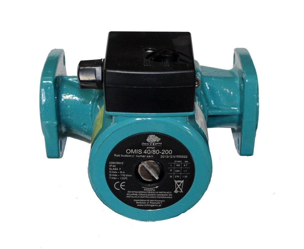 Pompa de recirculare Omnigena OMIS 40-50/200 este folosita pentru circulatia apei calde, atat in sisteme inchise, cat si in sisteme deschise.Pompa are 3 trepte de viteza. Fluidul pompat trebuie sa fie curat, sa nu contina contaminanti solizi sau uleiuri, sa nu fie vascos, sa fie neutru din punct de vedere chimic, sa fie apropiat de proprietatile apei ( maxim 30% glicol).