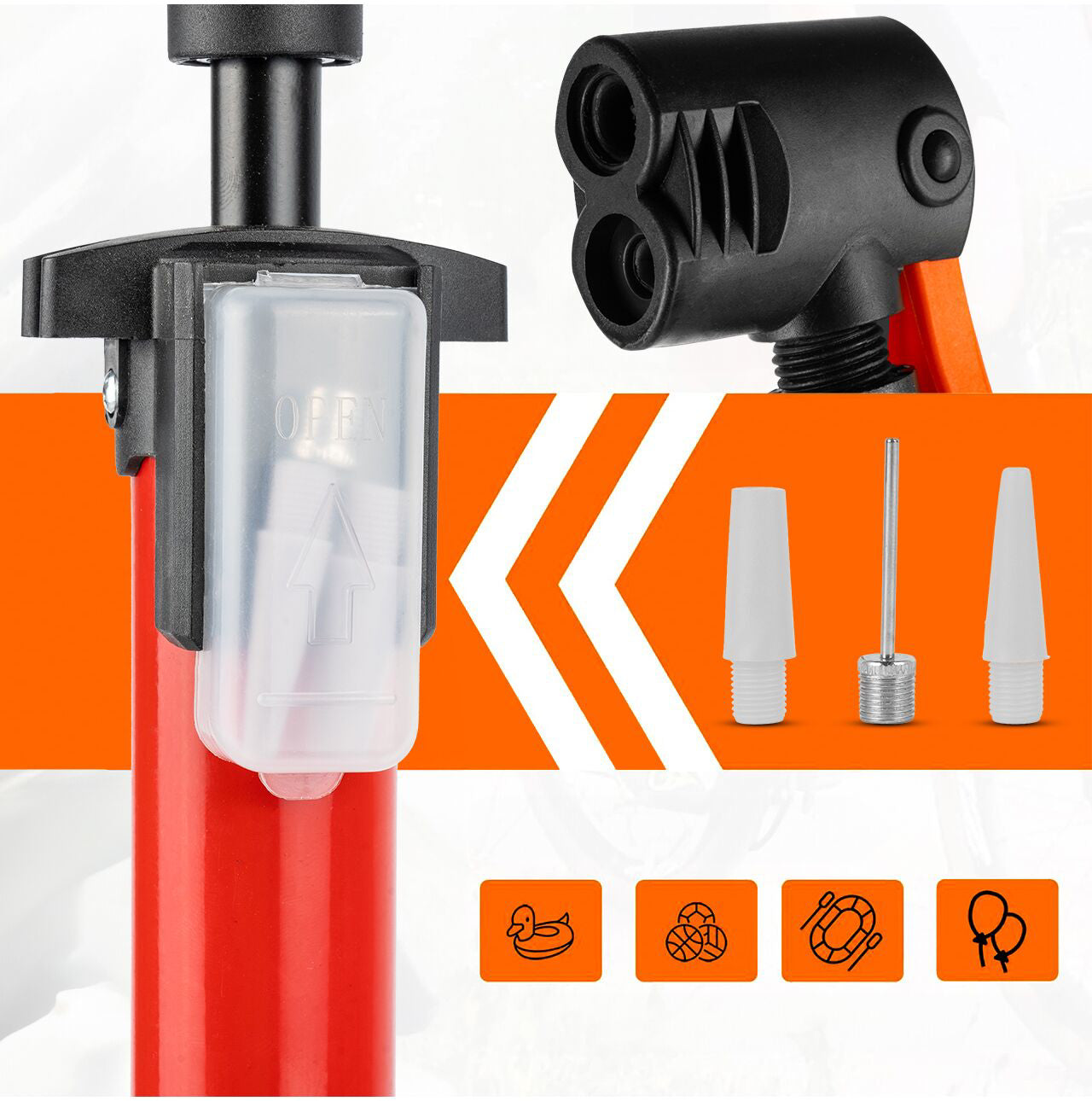 Pompa de podea pentru biciclete ofera o solutie cuprinzatoare pentru umflarea unei varietati de articole, de la anvelope de masina, prin anvelope de bicicleta, pana la echipamente sportive si jucarii gonflabile.