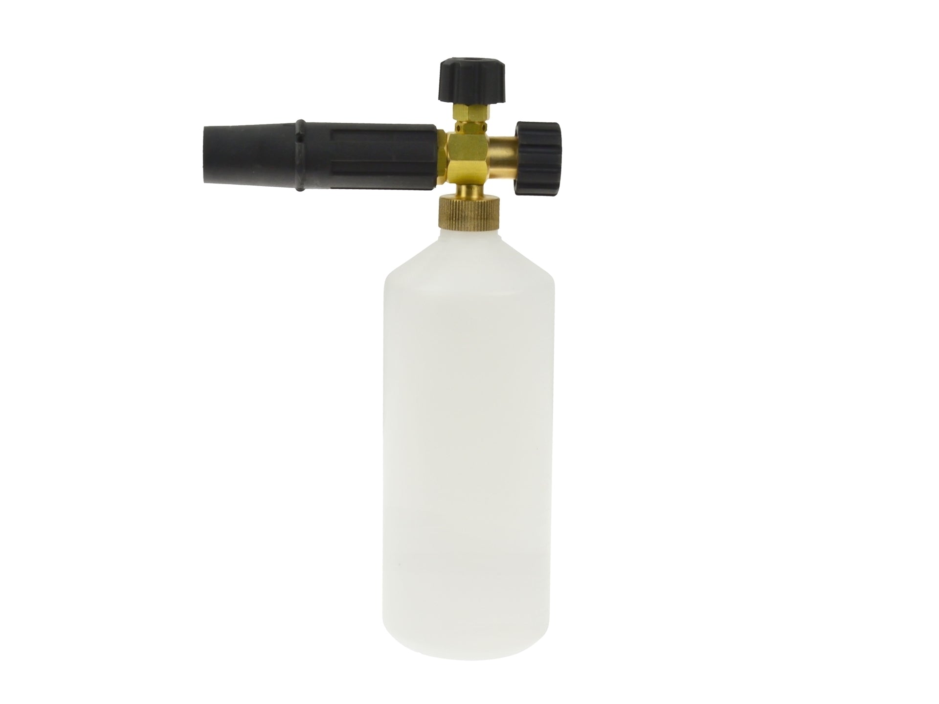 Corpul din alama garanteaza o utilizare durabila si fara probleme. Spuma ofera mult mai multe posibilitati decat saibele de presiune echipate cu un rezervor de detergent integrat. Folosind spuma avem capacitatea de a folosi chimie mai puternica, deoarece detergentul nu este conectat la circuitul de spalare a presiunii interne, ci este luat din recipientul de spumare însurubat direct la pistolul de presiune.