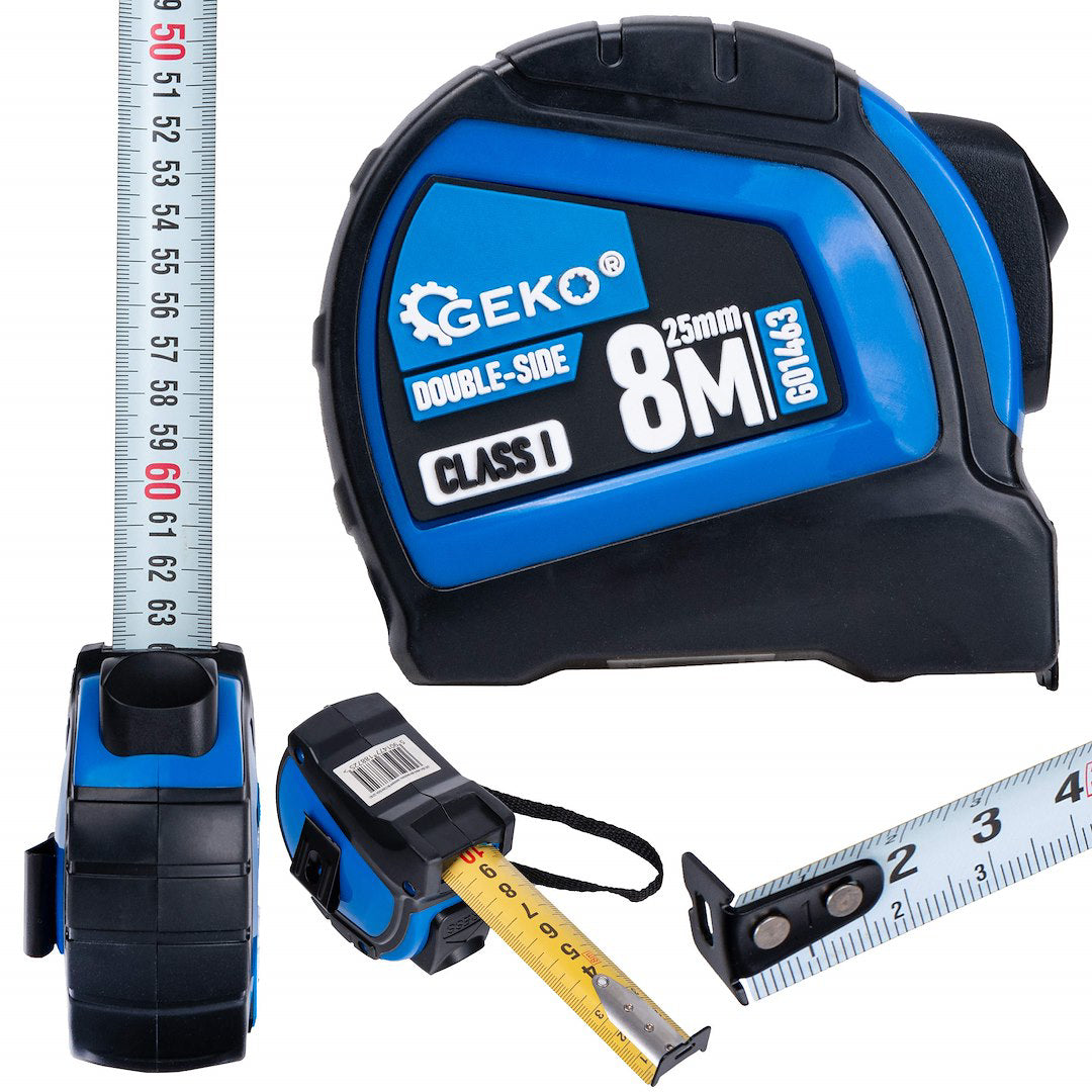 Ruleta Geko G01463 este un instrument de masurare fiabil, ideal pentru utilizare zilnica in atelier, pe santier sau acasa. Datorita designului inovativ cu scara pe doua fete si sistemului de oprire automata, aceasta ruleta asigura o masurare precisa si confortabila. Constructia solida si materialele de calitate superioara garanteaza o utilizare indelungata, iar designul ergonomic asigura un confort sporit in utilizare.