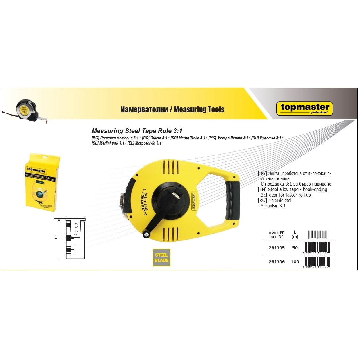Ruleta are carcasa din plastic, are sistem de rulare cu multiplicator 3:1 si maner de transport.