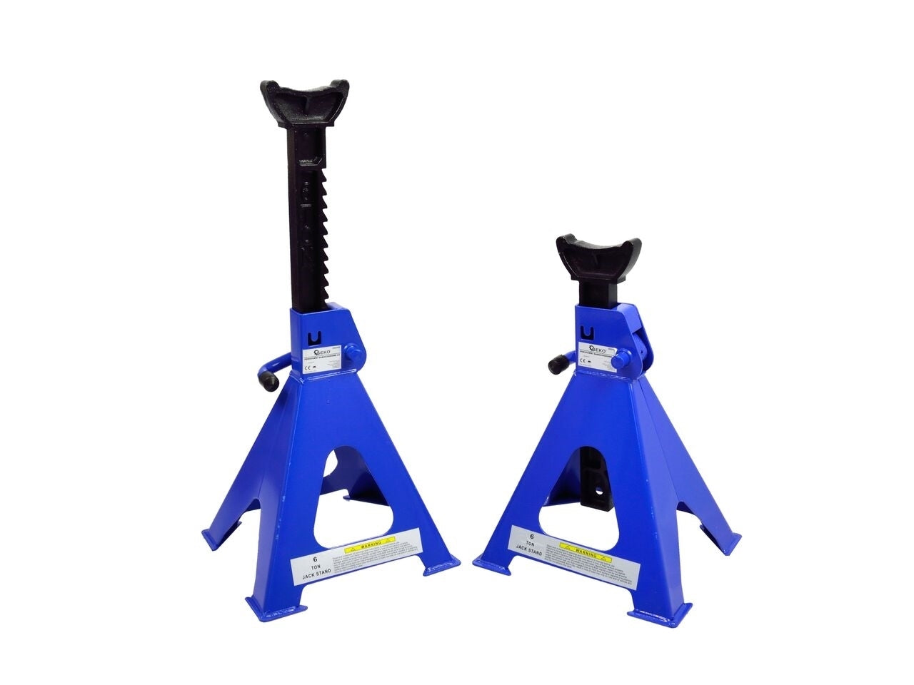 Un set de standuri auto 6T. Standuri foarte solid fabricate din tabla groasa de otel cu un mecanism cu clichet care permite reglarea foarte precisa a inaltimii pe mai multe niveluri. Este folosit pentru a sprijini masinile si alte dispozitive dupa ce acestea au fost ridicate anterior cu un cric. Faciliteaza munca intr-un atelier, garaj, incl. la inlocuirea rotilor si a altor reparatii auto.
